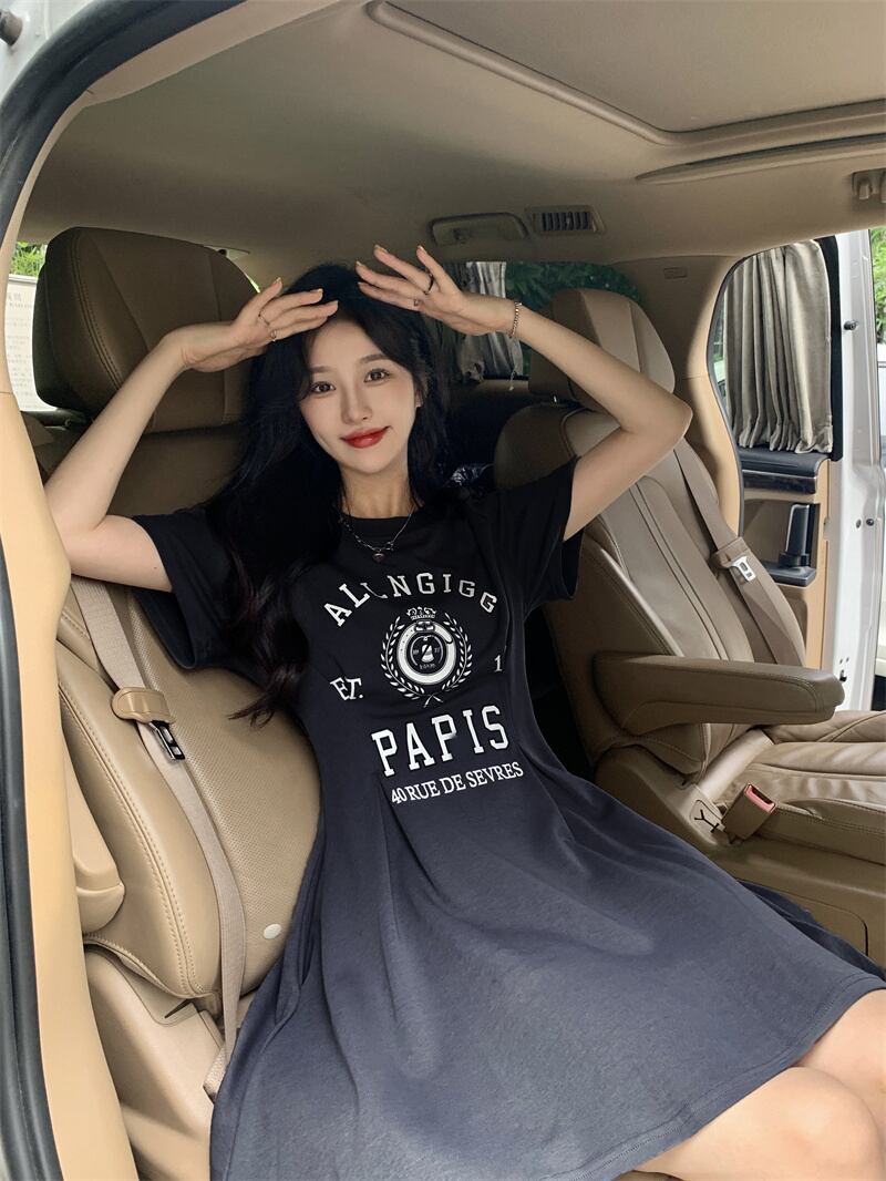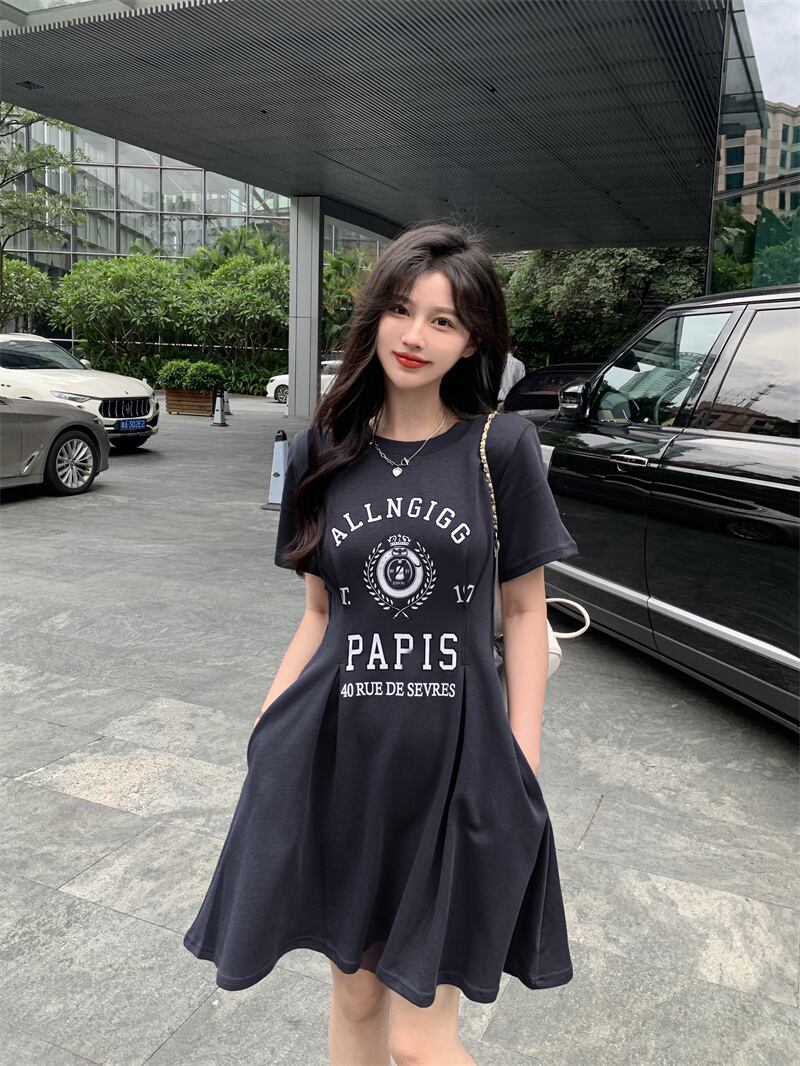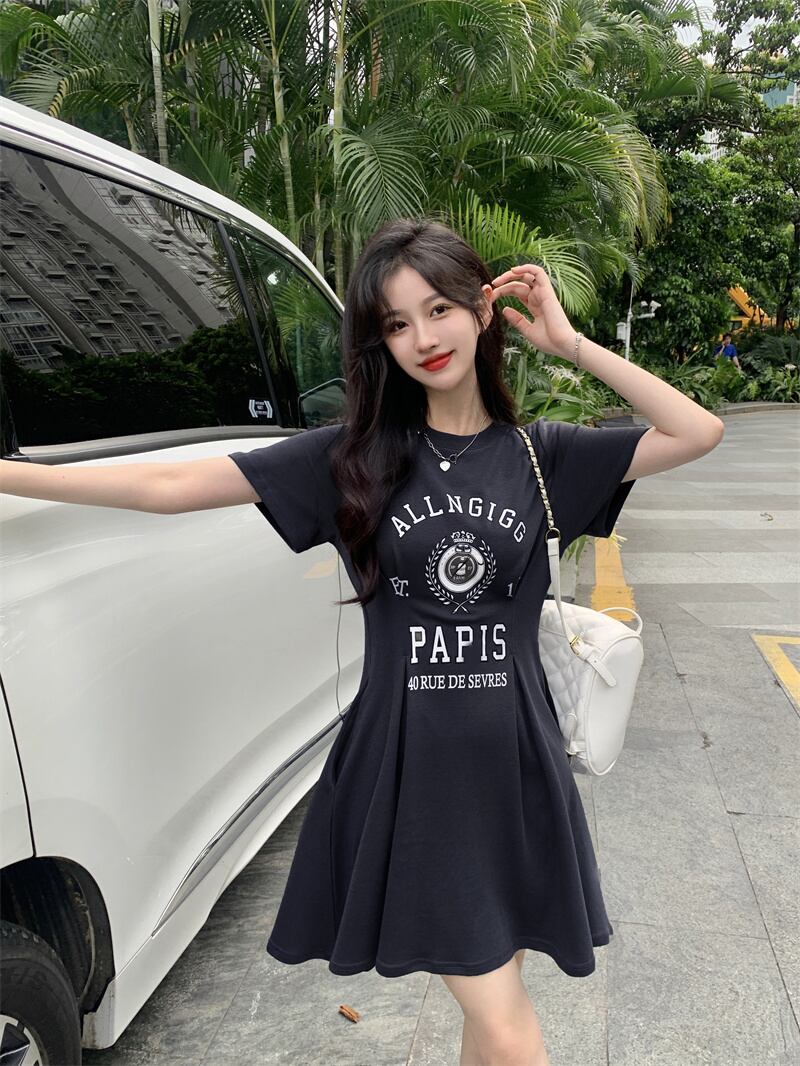 ブラックTシャツ ドレス サマーウェストカジュアルスカート 夏物 s576162710221108