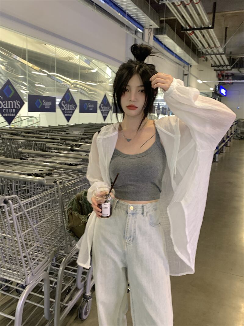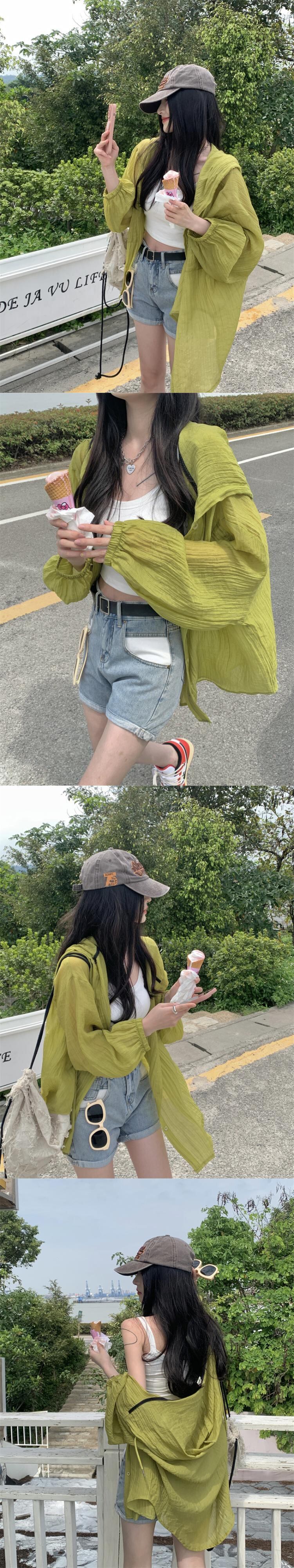 ルーズホワイトフードシャツ ジャケット サマー薄手プリーツトップス レッド 夏物 s57612934165445