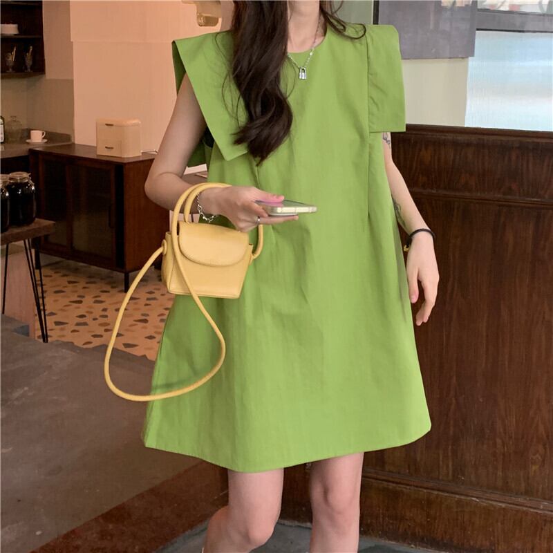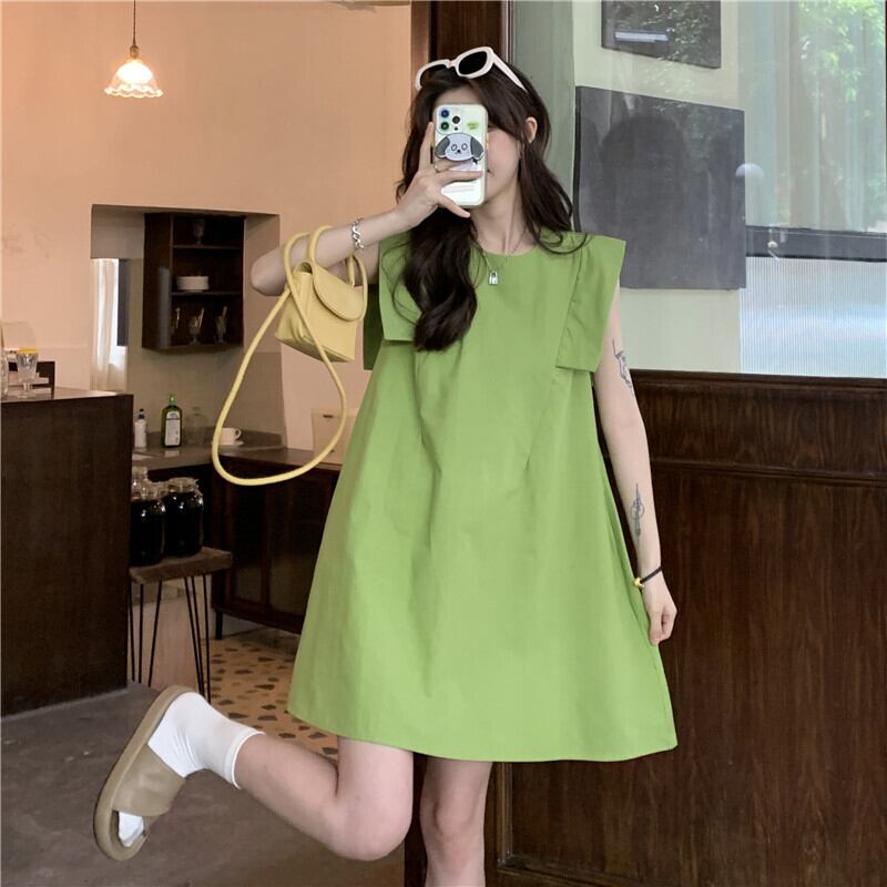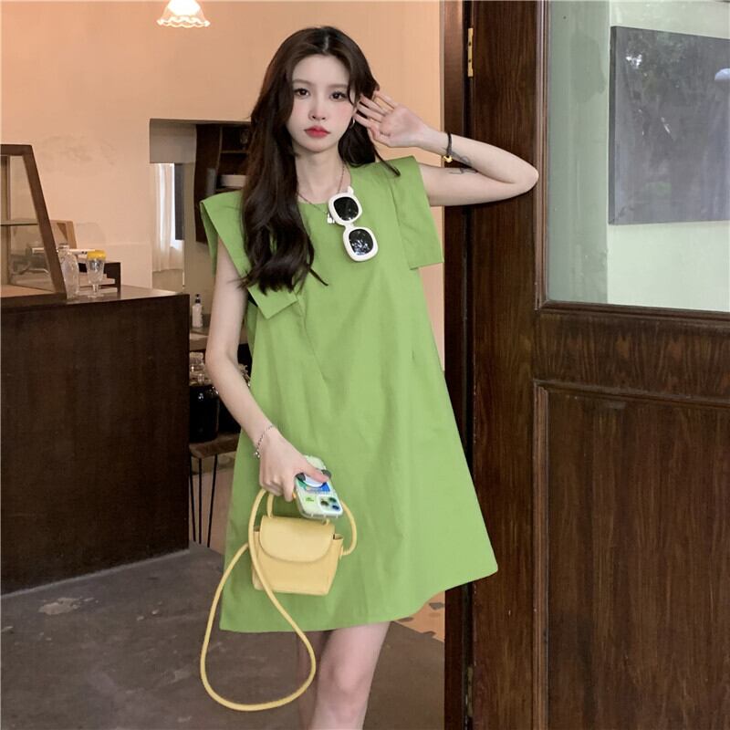 グリーンノースリーブドレス サマースカート 大人ガーリー スウィート キュート カジュアル 夏物 s576159815910861