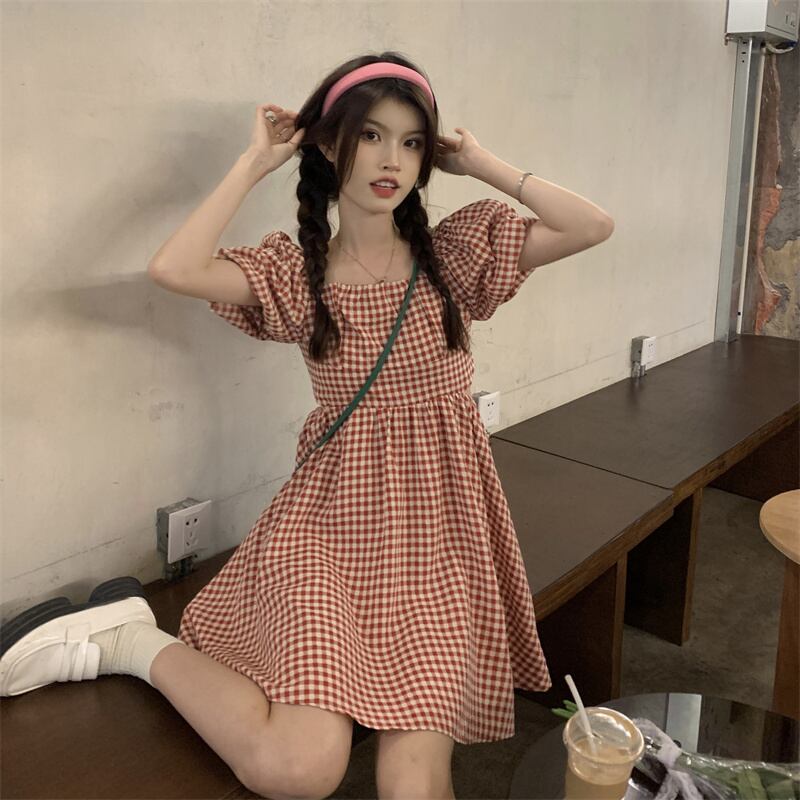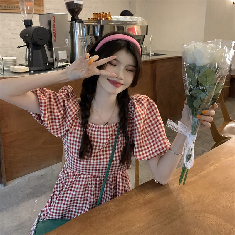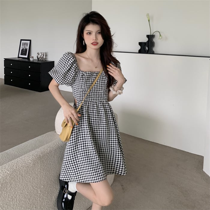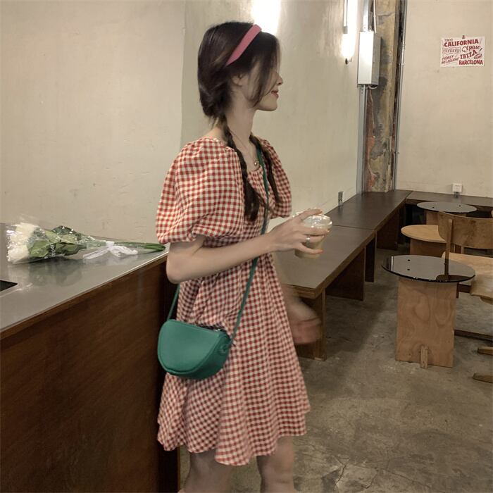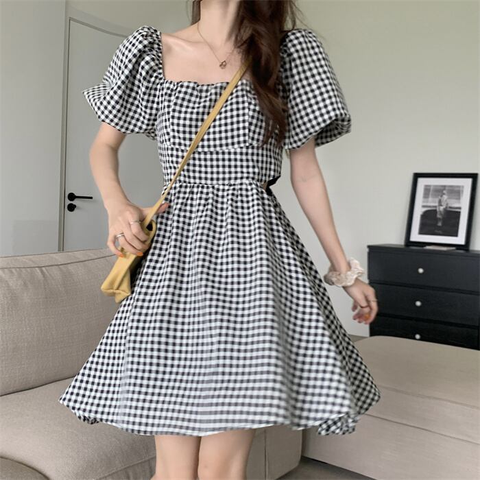 ウェストスカート スリーブドレス サマー格子柄 夏物 s576164989383048