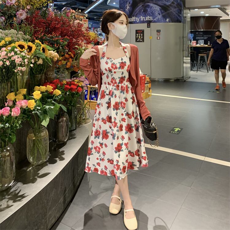 色:ローズプリント柄ドレス,Cardigan