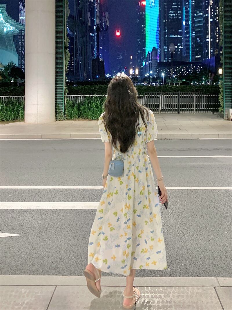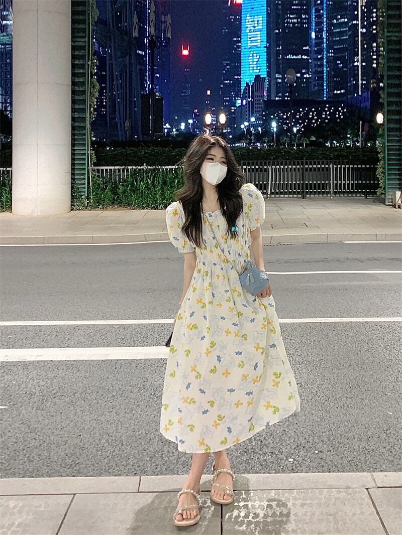フローラルドレス サマースリーブロングスカート 大人ガーリー スウィート キュート カジュアル 夏物 花柄 s576171843766983