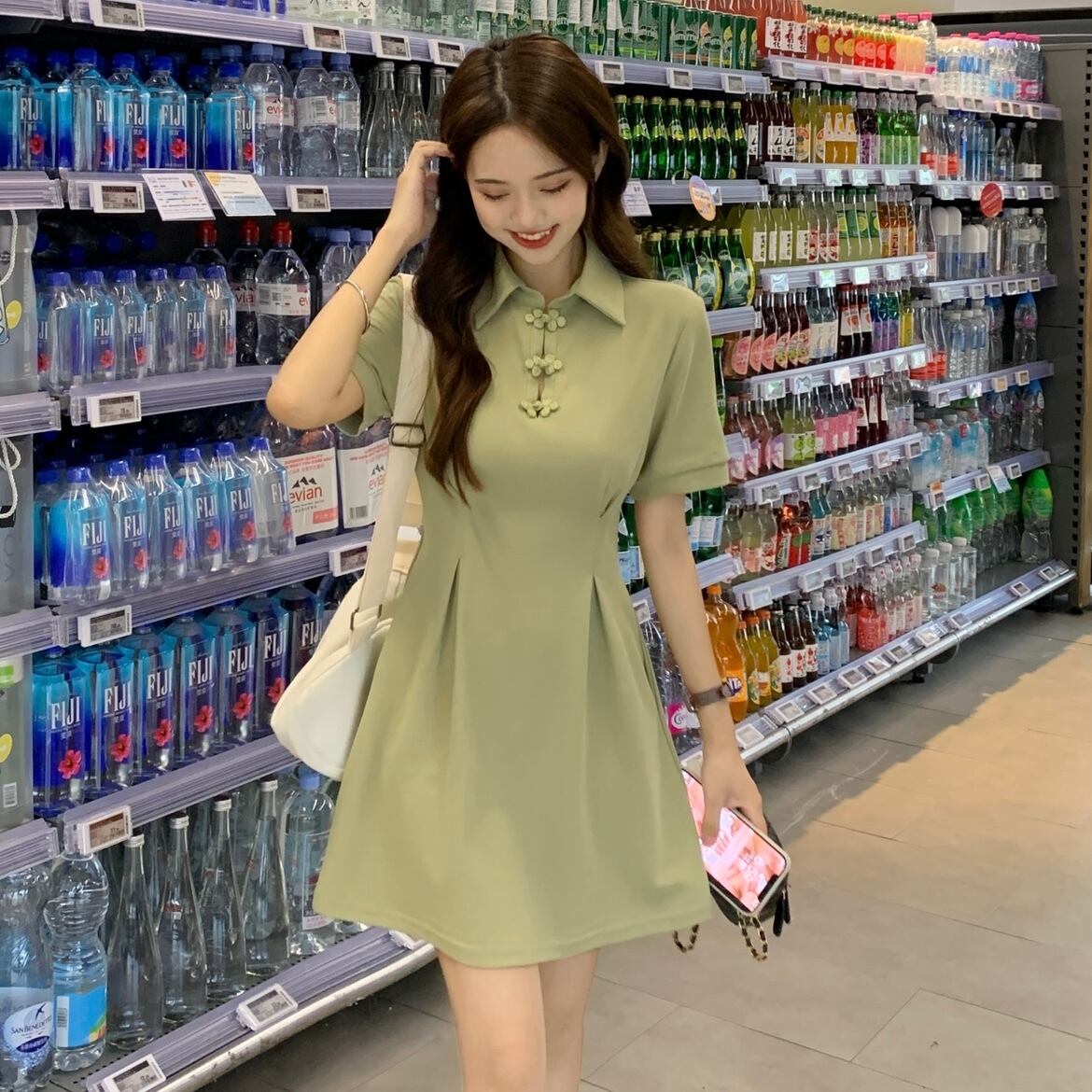 スタイルボタンドレス サマーウェストショートスカート 夏物 s576165787329454