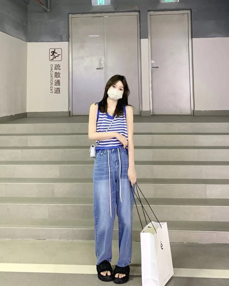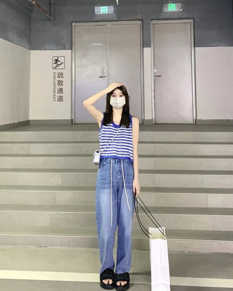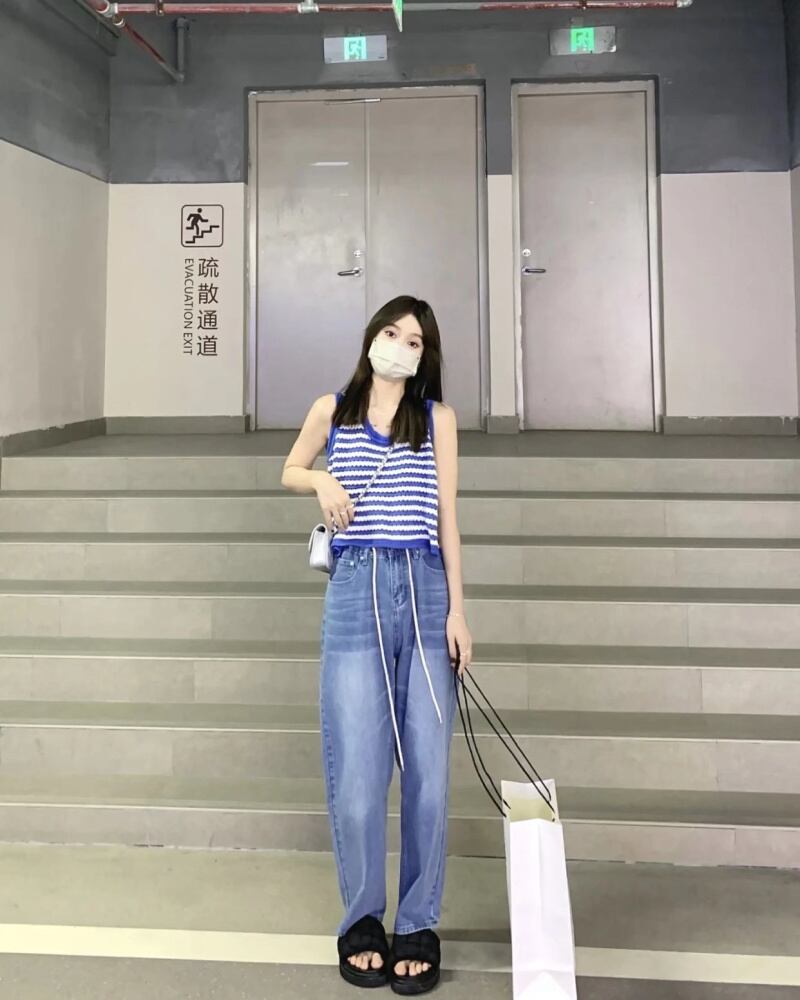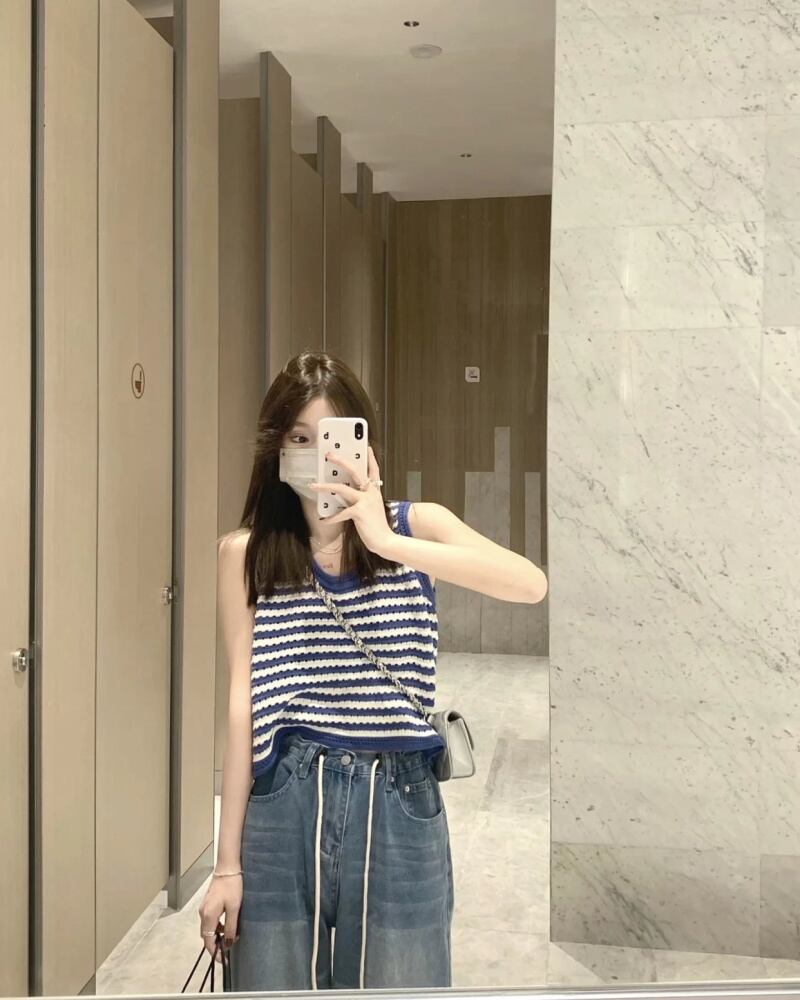 ストライプニットサマーレッドノースリーブトップス 夏物 s57614284175793