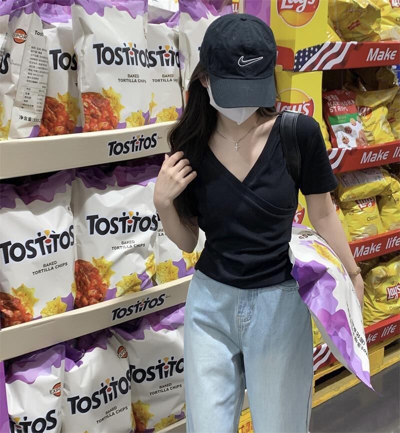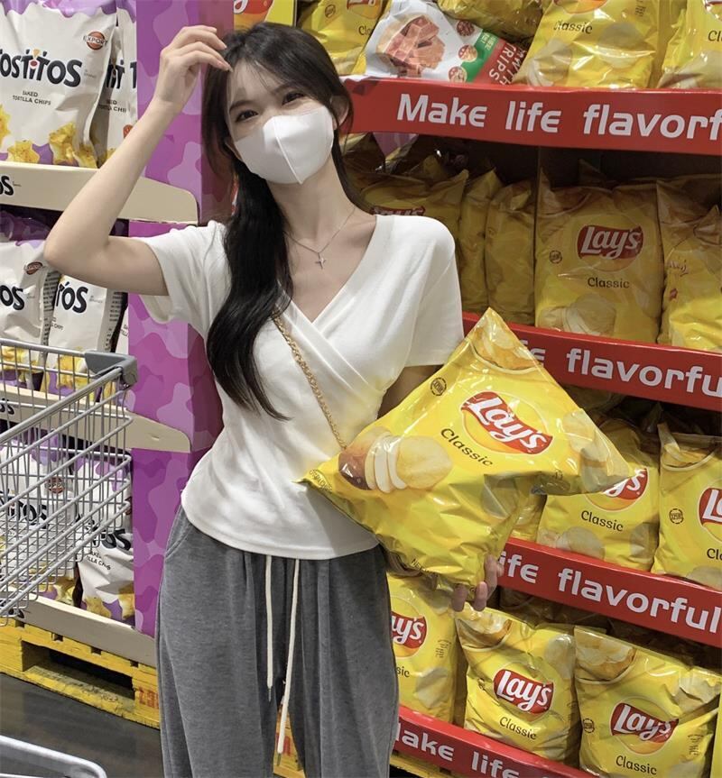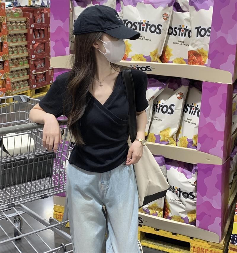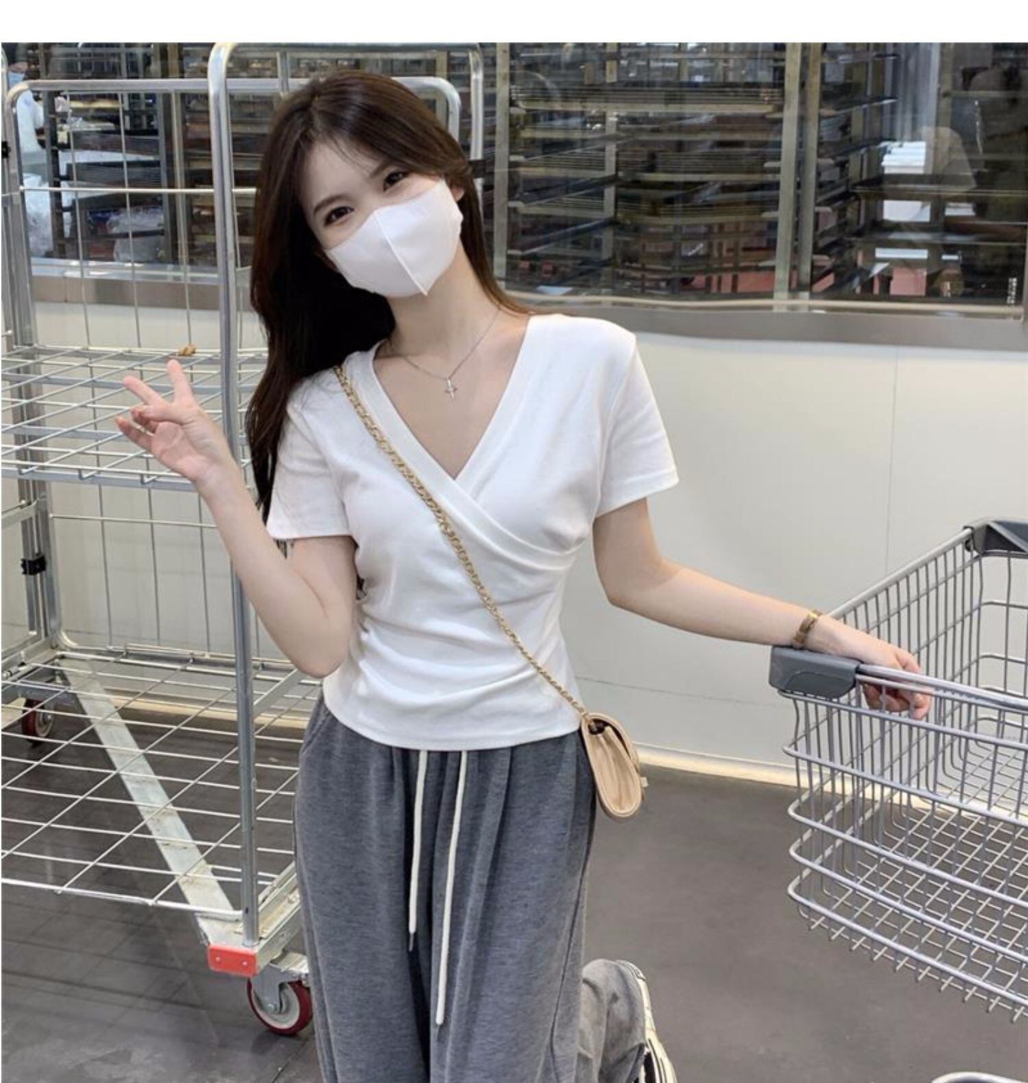 ホワイトTシャツ サマースタイルスリムVネック 夏物 s576175457969867