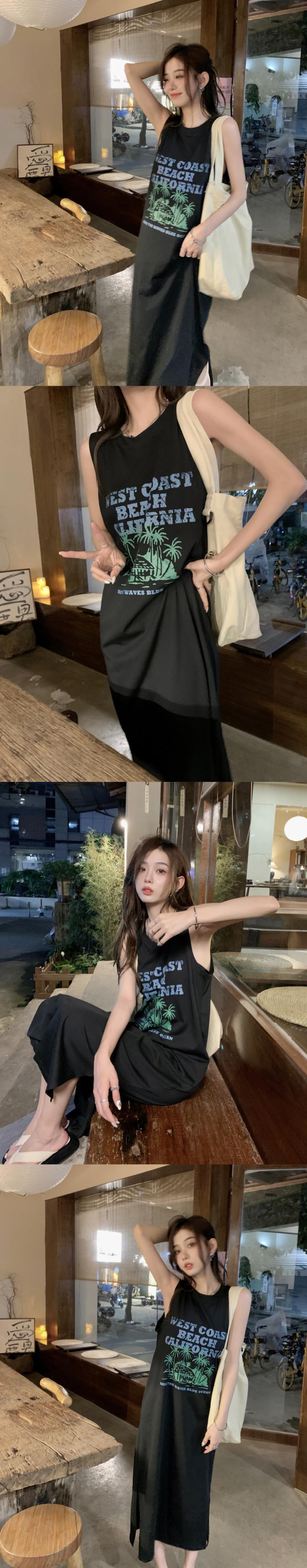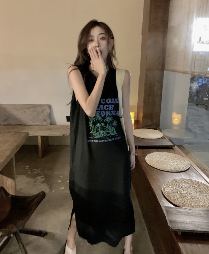 ノースリーブドレス サマールーズカジュアルブラックスリットロングスカート 夏物 s57613421902502