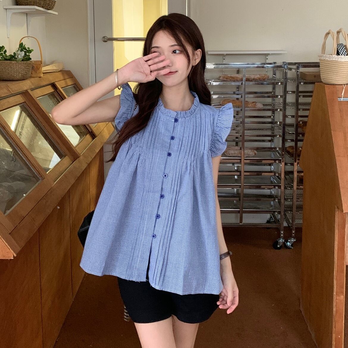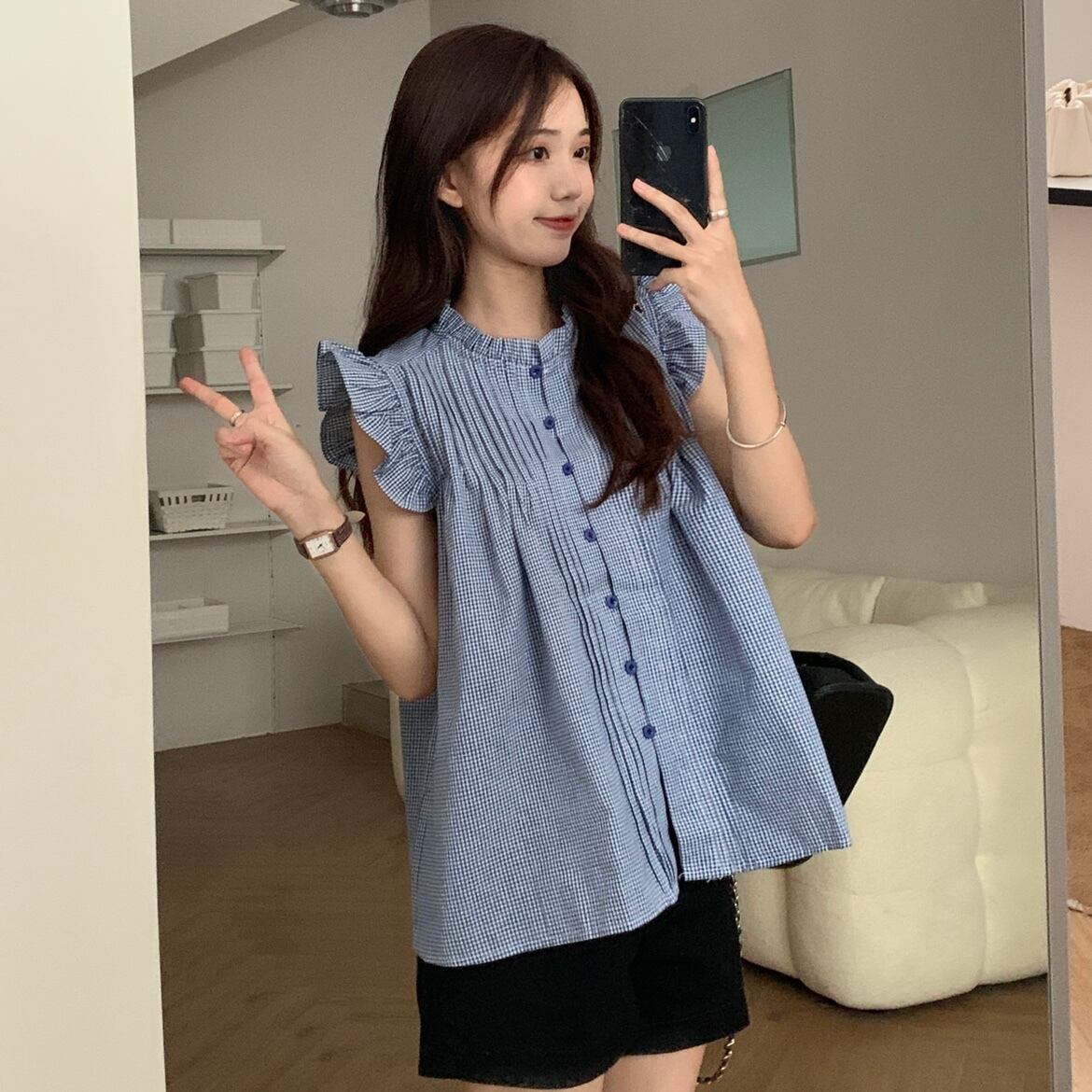 スタイルトップス サマースリーブ格子柄シャツ 夏物 s576163340526620