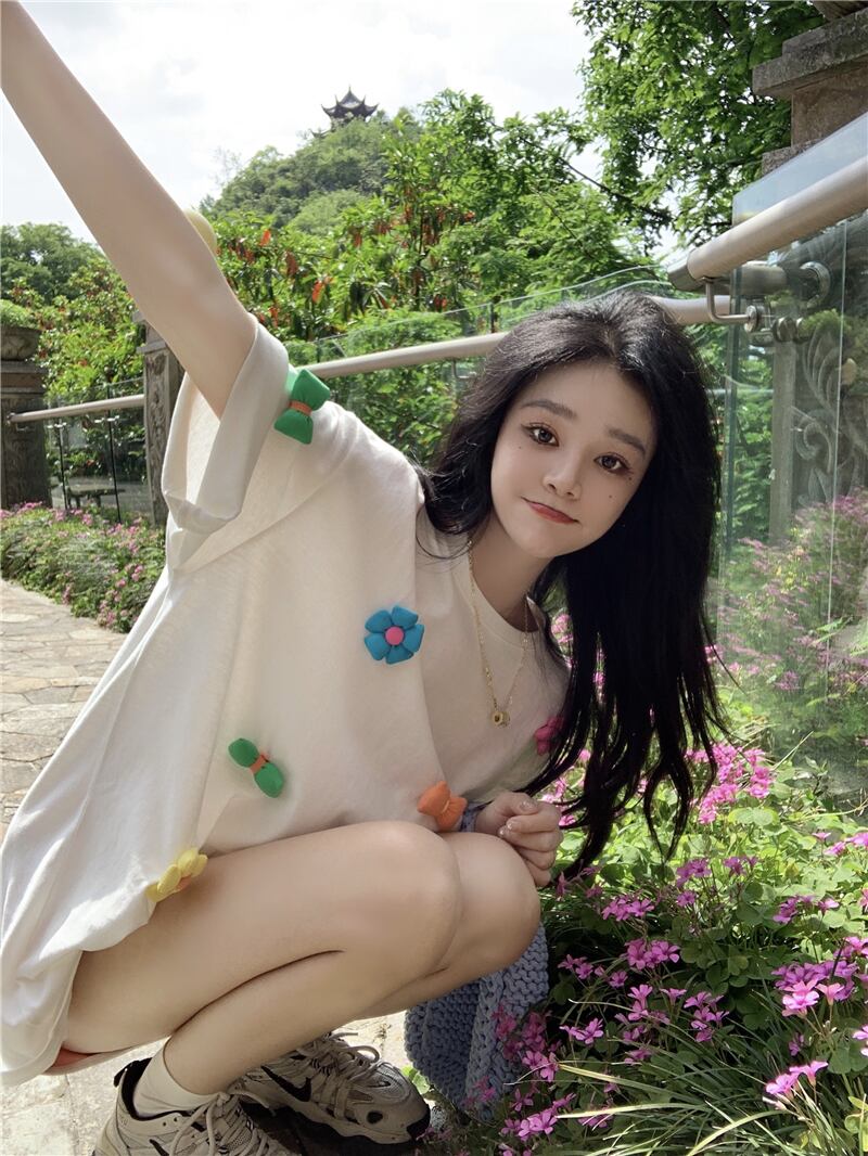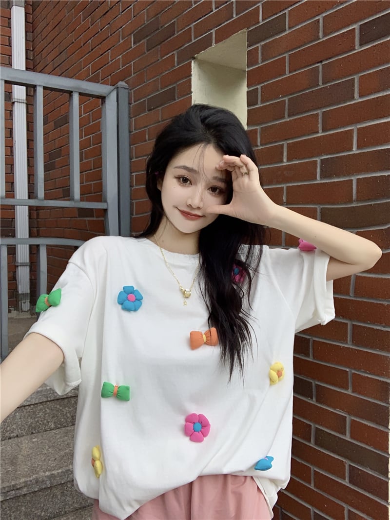 ホワイトTシャツ サマーロングトップス 大人ガーリー スウィート キュート カジュアル 夏物 s576189487250232