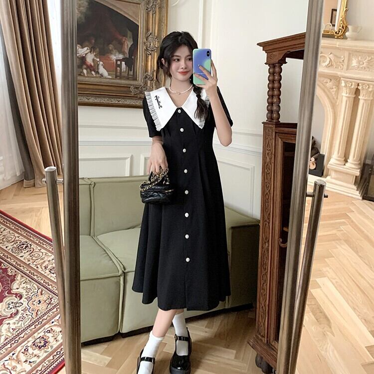 ブラックカラードレス サマースタイルロングスカート 夏物 s576138257519093