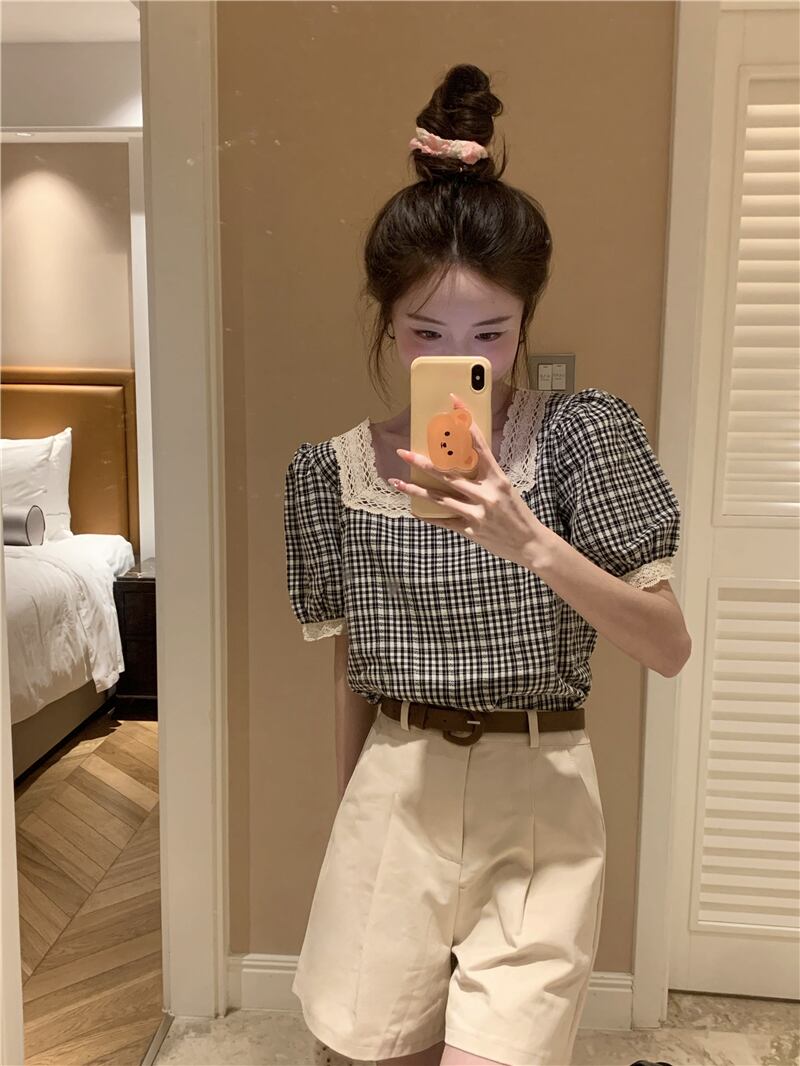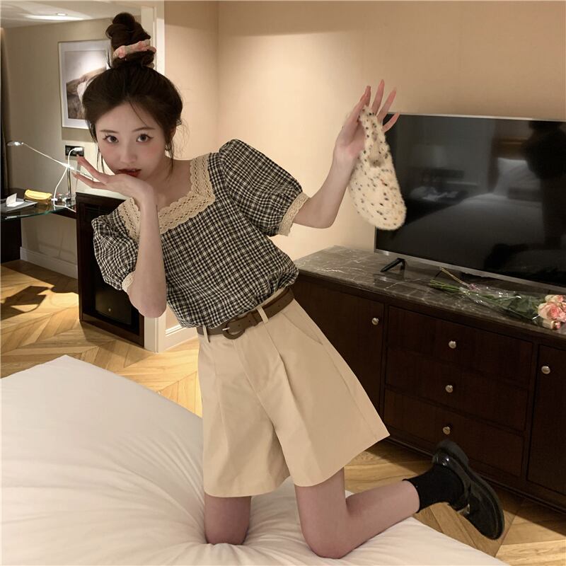色:チェックshirt,アプリコットshorts