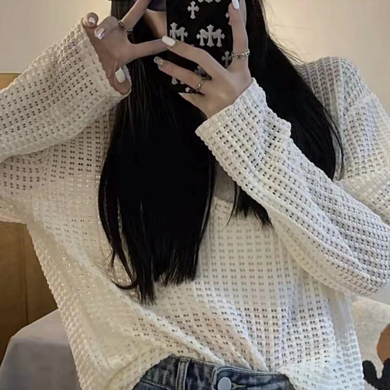 スタンダードVネックTシャツ サマールーズ薄手トップス ロング レトロ 夏物 s576131372084126
