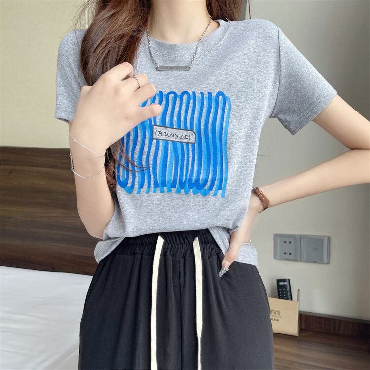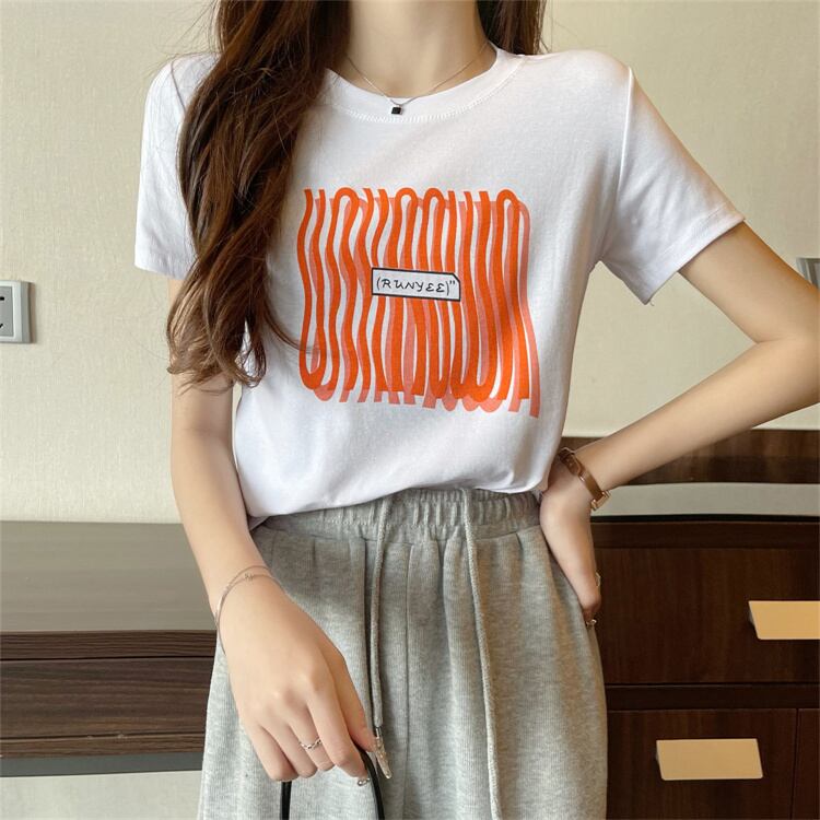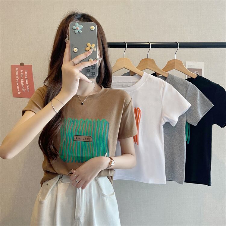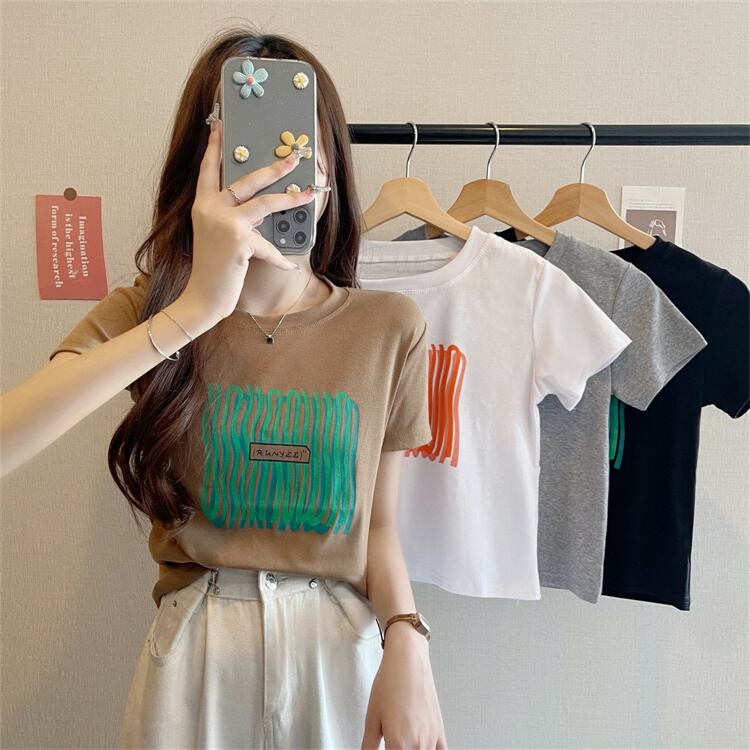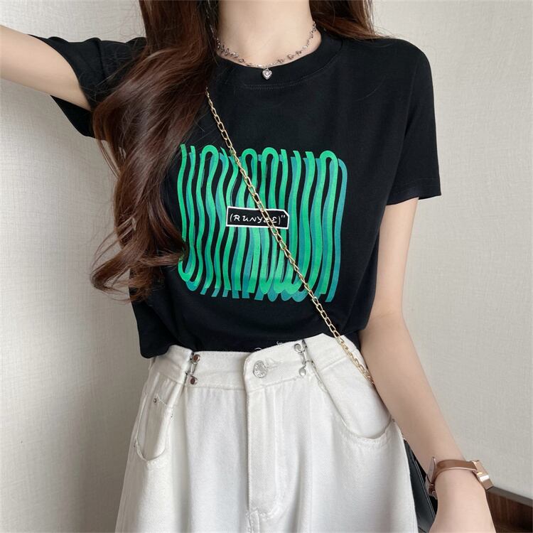 グリーンラインパターンショートTシャツ サマースリムフィットトップス 夏物 s576134719268599