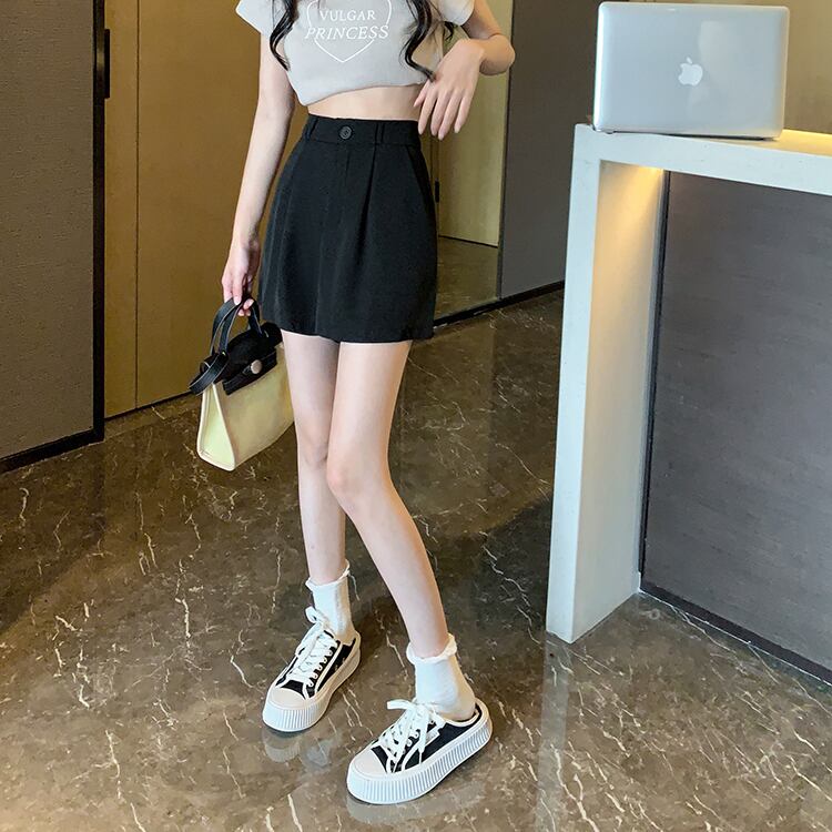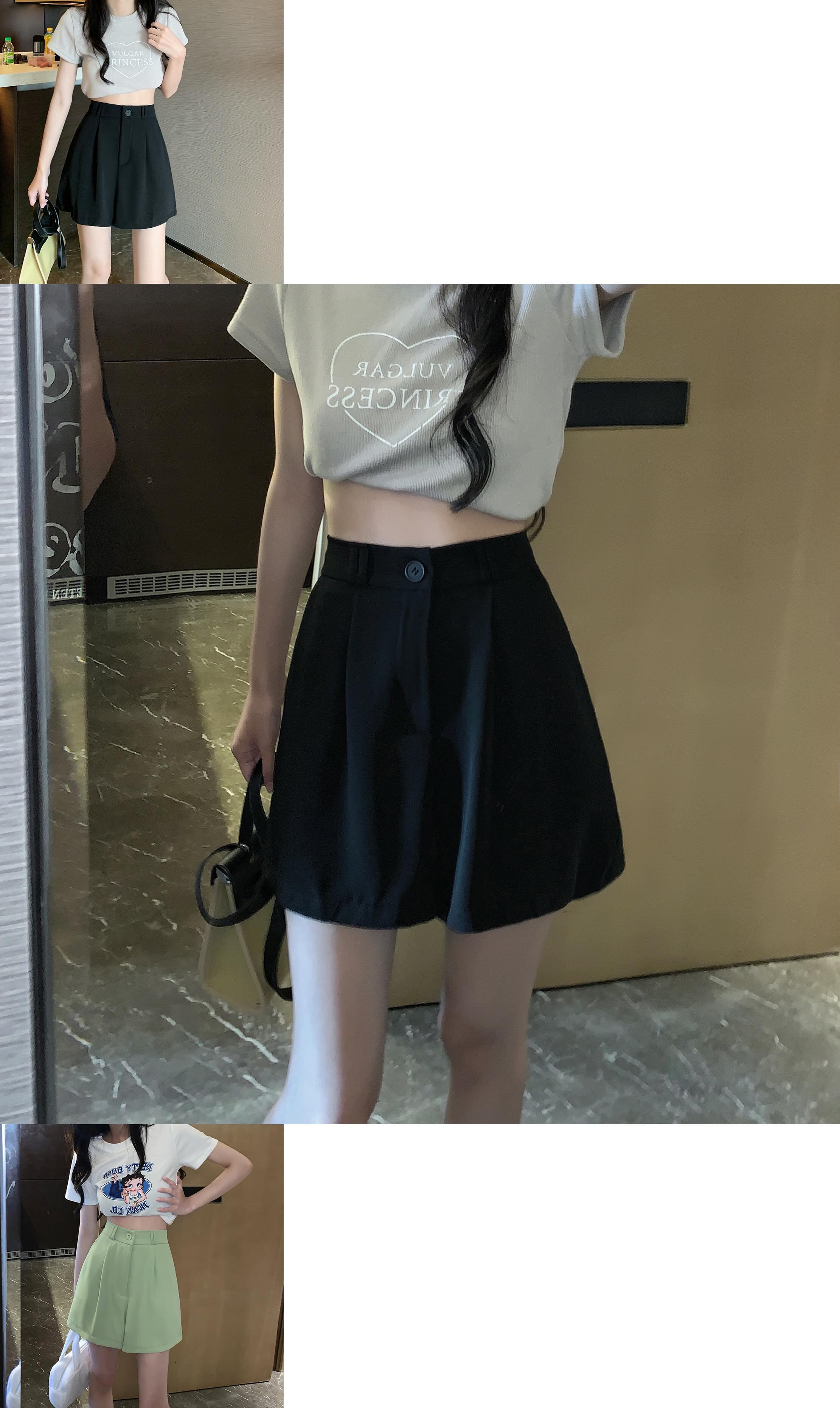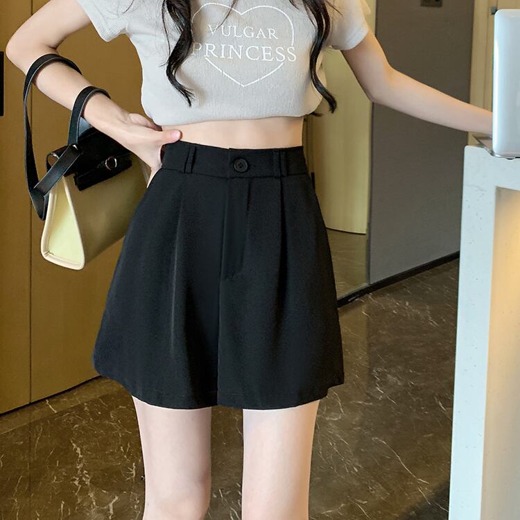 サマー薄手ストレッチウェストパンツ ブラックワイドレッグショーツ ハイウェストカジュアル エラスティック 伸縮 夏物 ブルマー ワイドパンツ s576173236044922