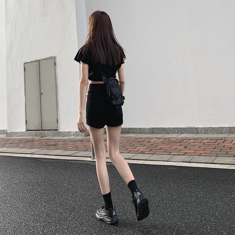 ブラックスキニージーンズ サマーハイウェストウェストショーツ パンツ 夏物 ブルマー s576142119723084