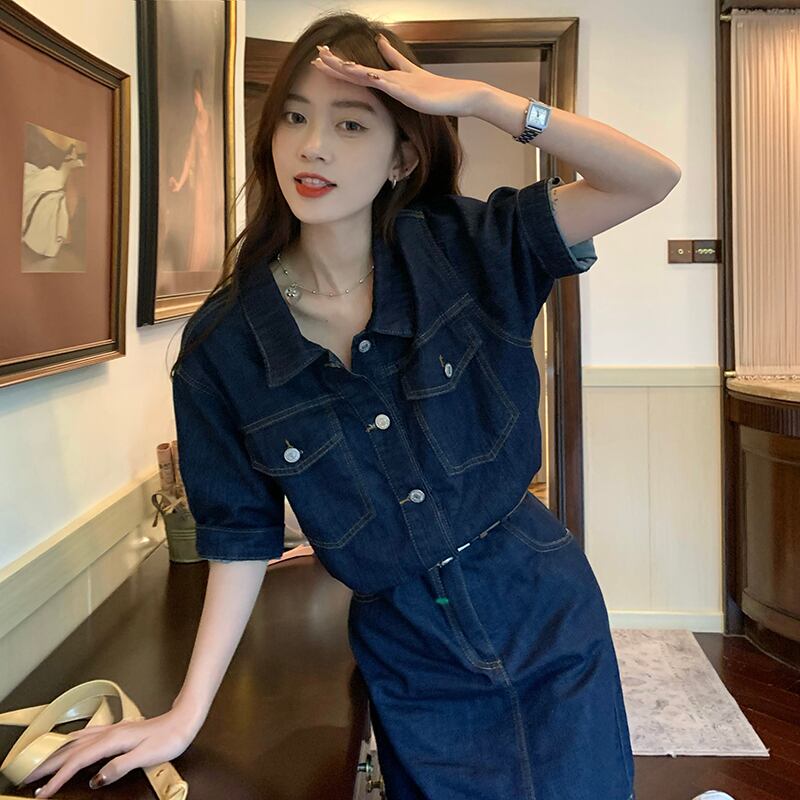 スタンダードドレス サマーウェストショートスカート レトロ 夏物 s576187591984239