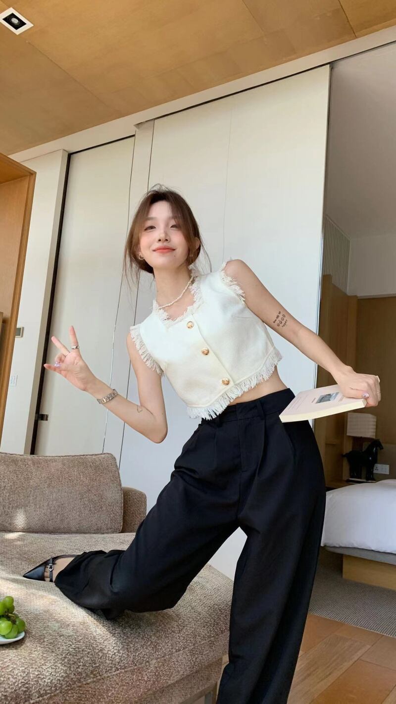 ノースリーブトップス カラースタンダードスリムサマー レトロ 夏物 s576197514736361