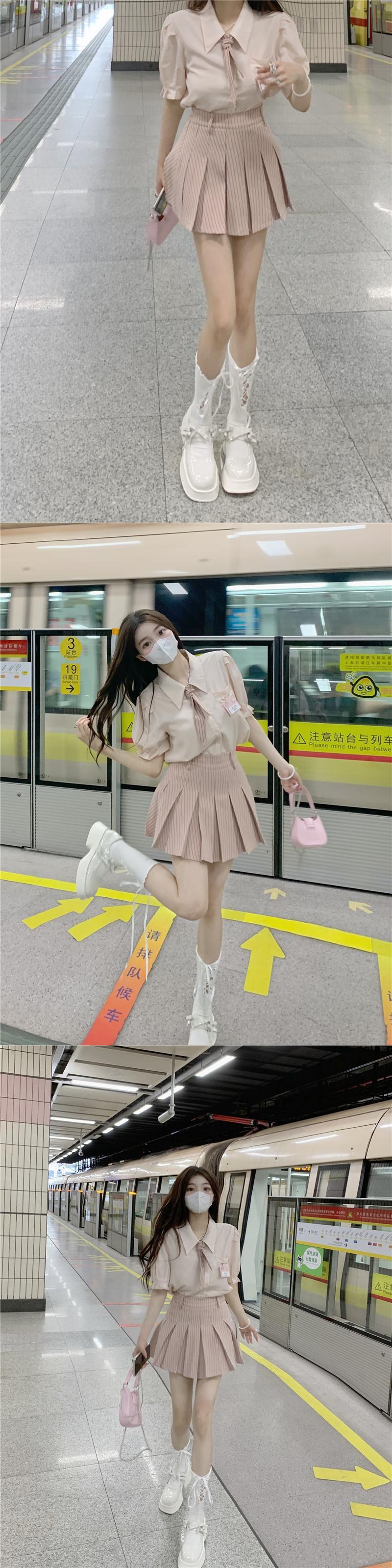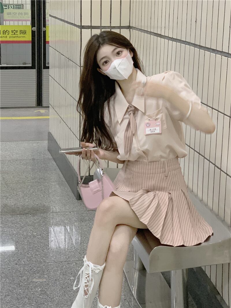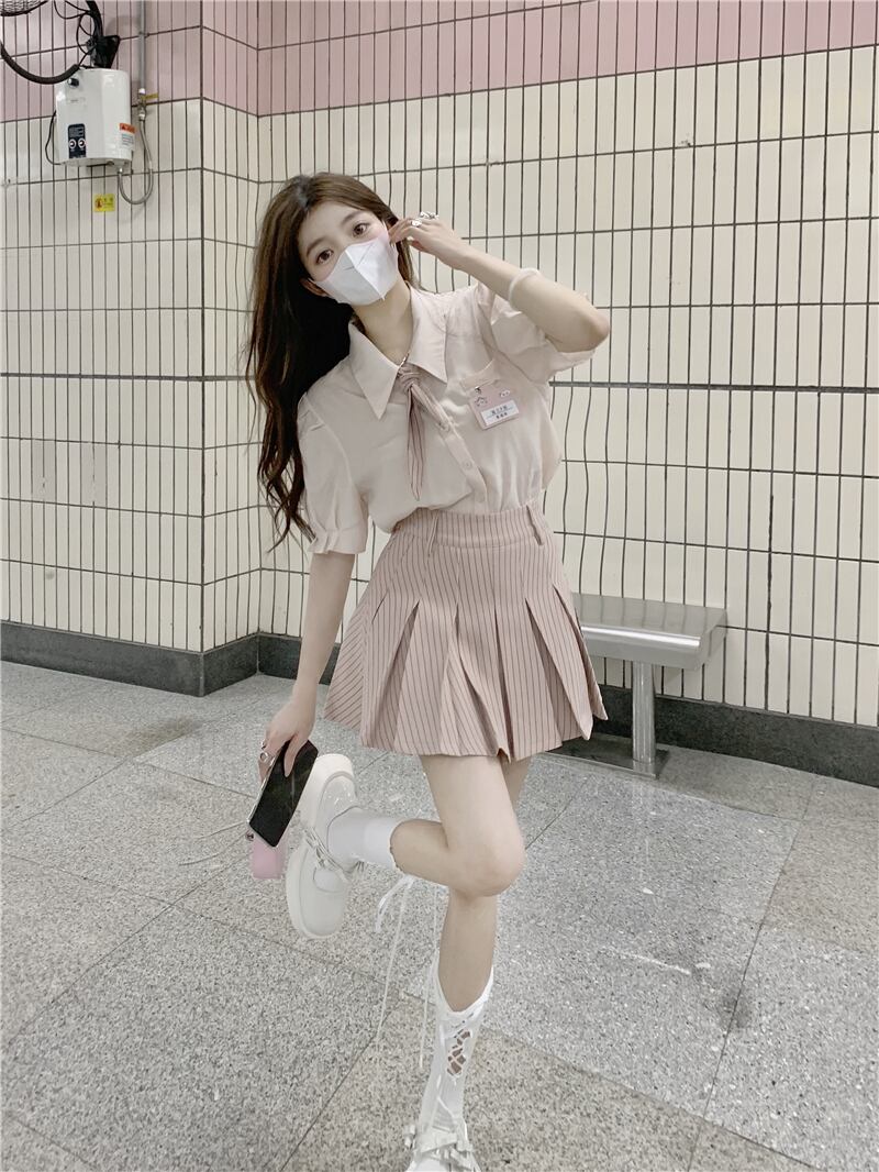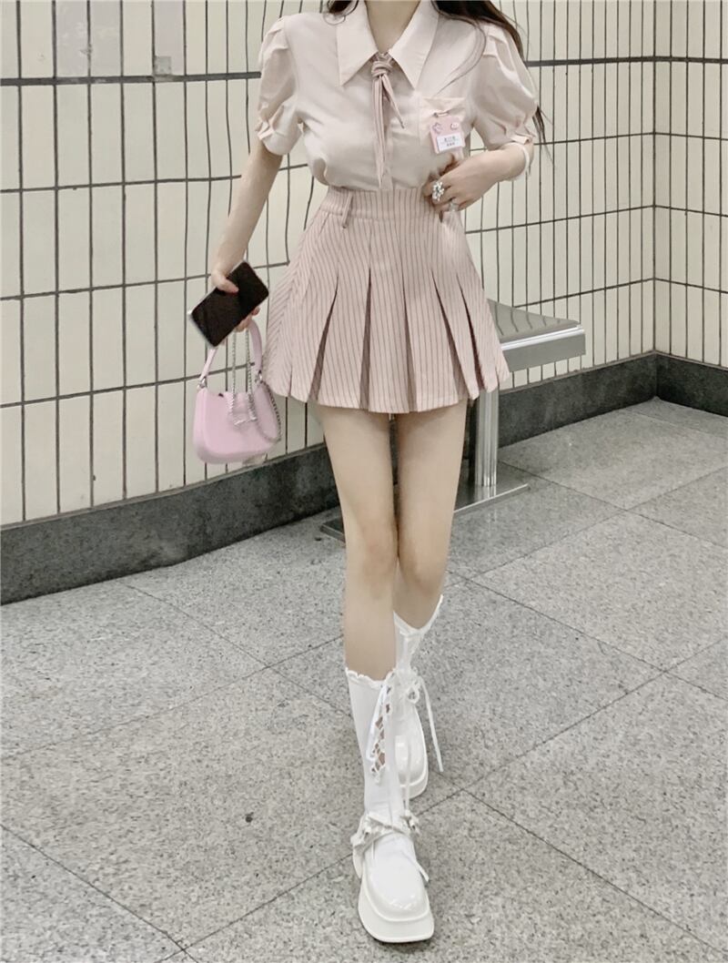 色:ピンクshirt,ピンクpleatedスカート