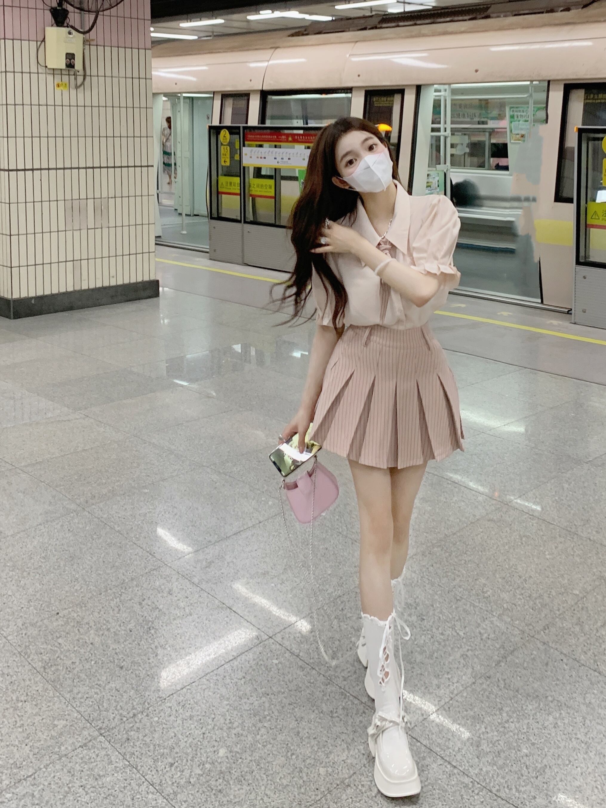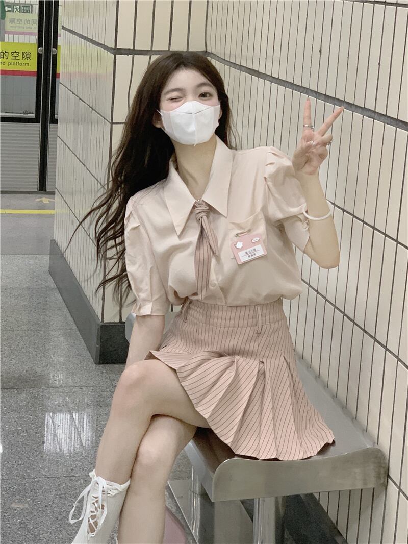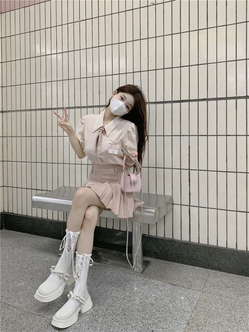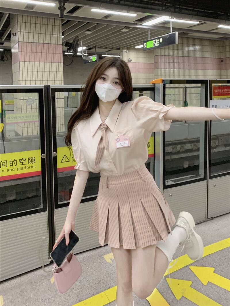 色:ピンクshirt,ピンクpleatedスカート