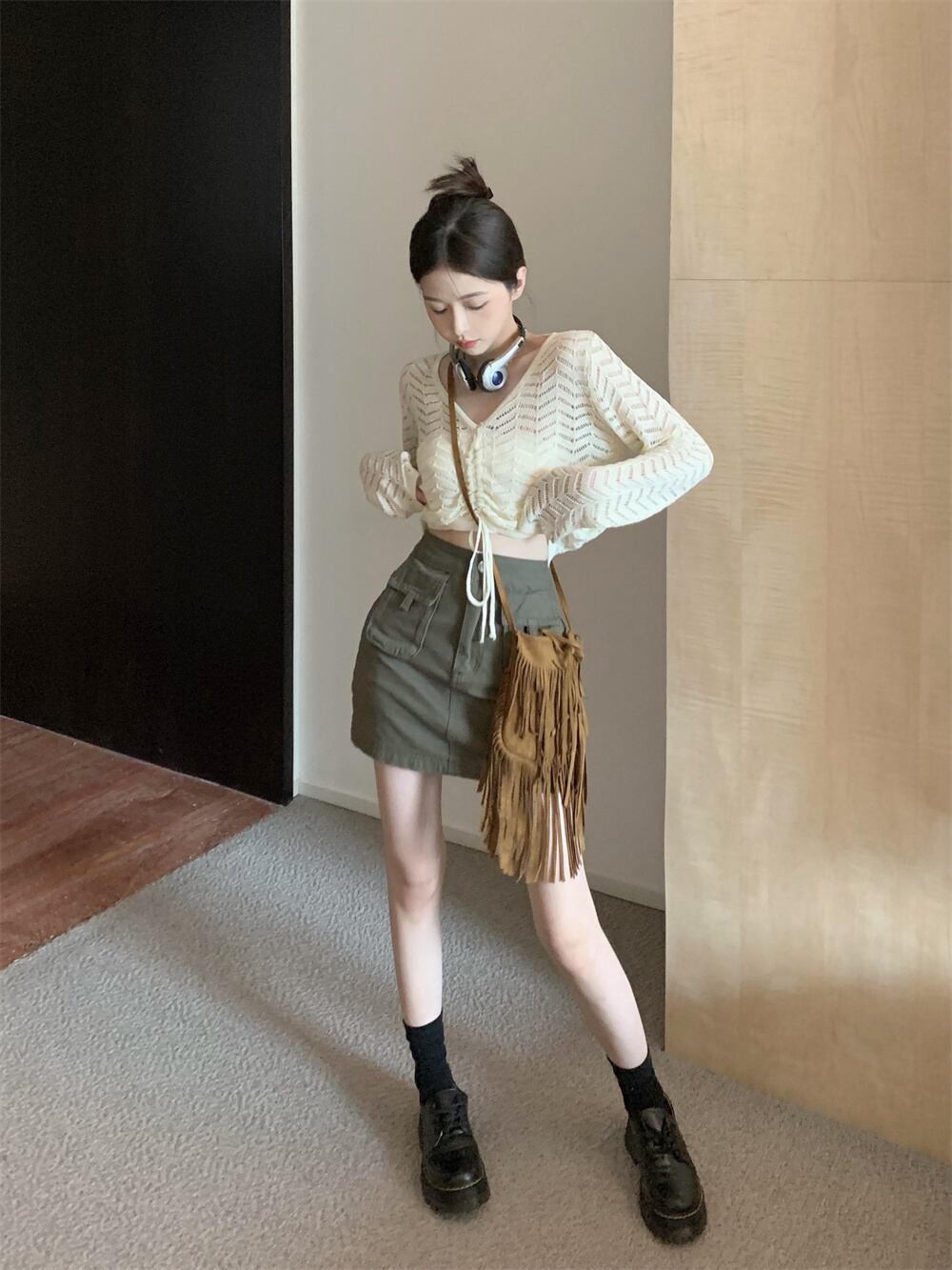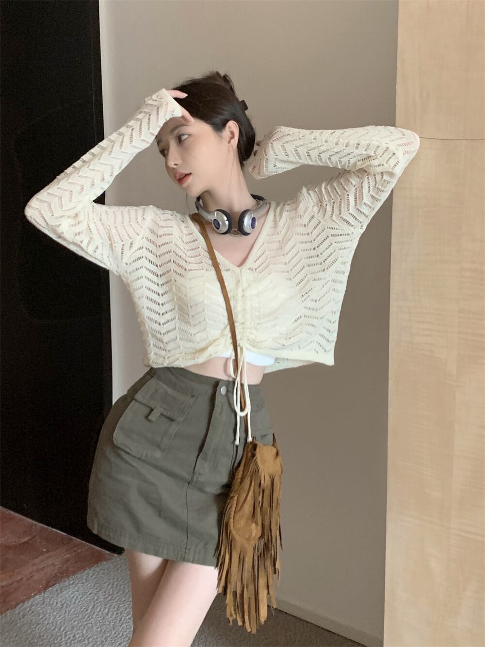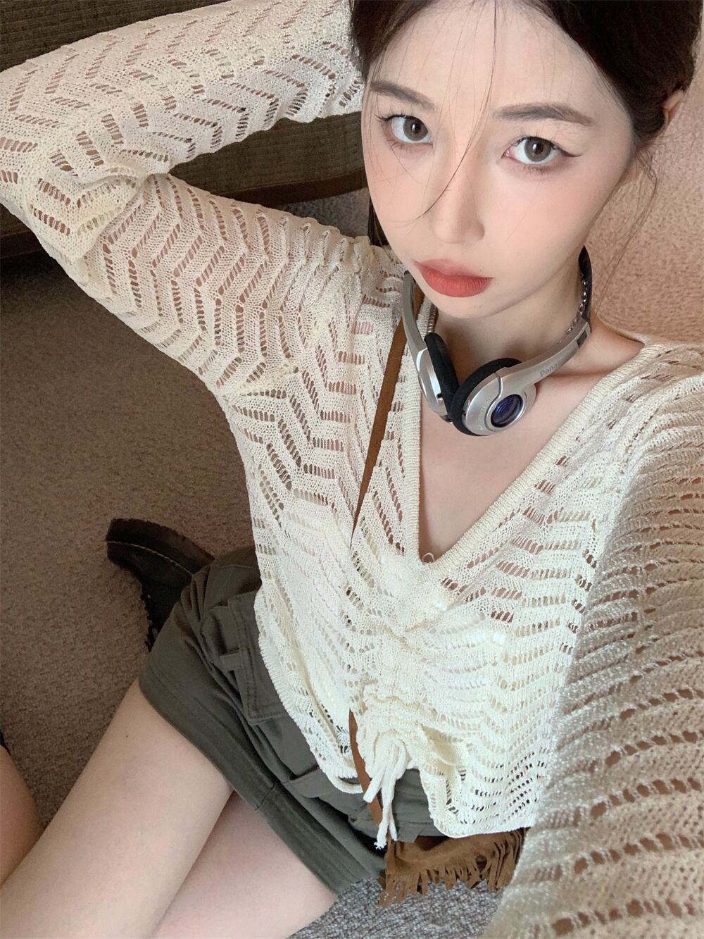 サマールーズVネックニットギャザーショートブラウス トップス 夏物 s576184394927469