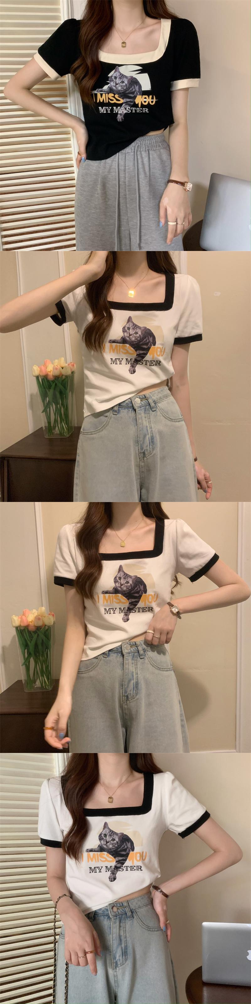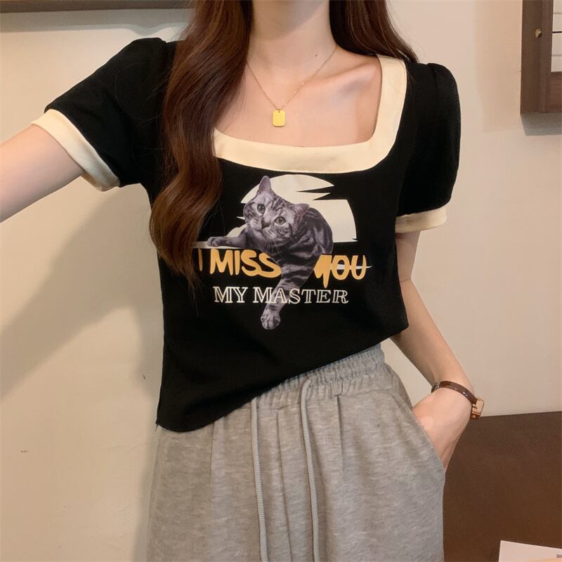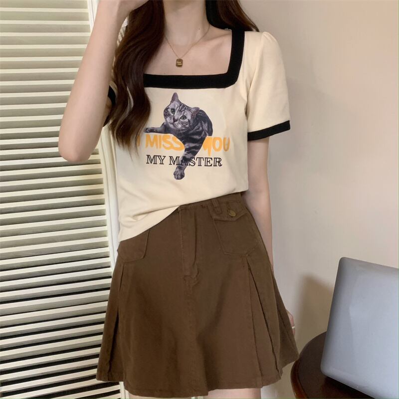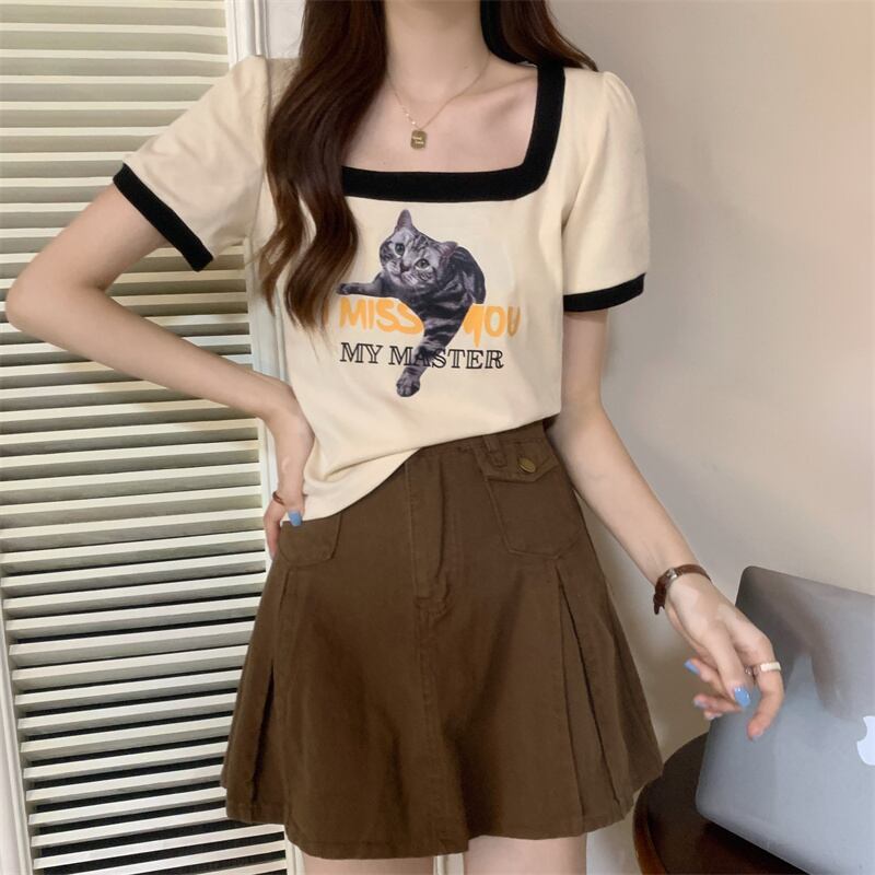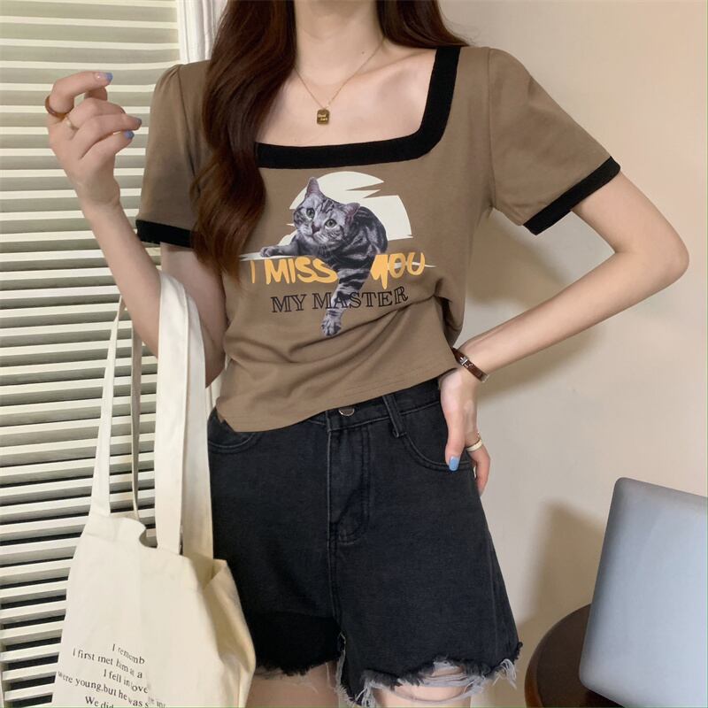 ショートTシャツ サマースタンダードカラートップス レトロ 夏物 スクウェア s576172284112405