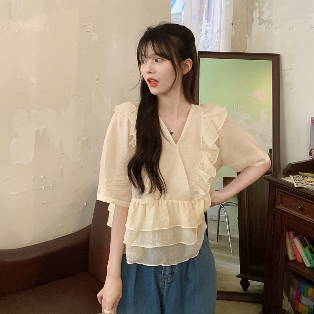 シャツ サマーVネックトップス 夏物 s576159641744940
