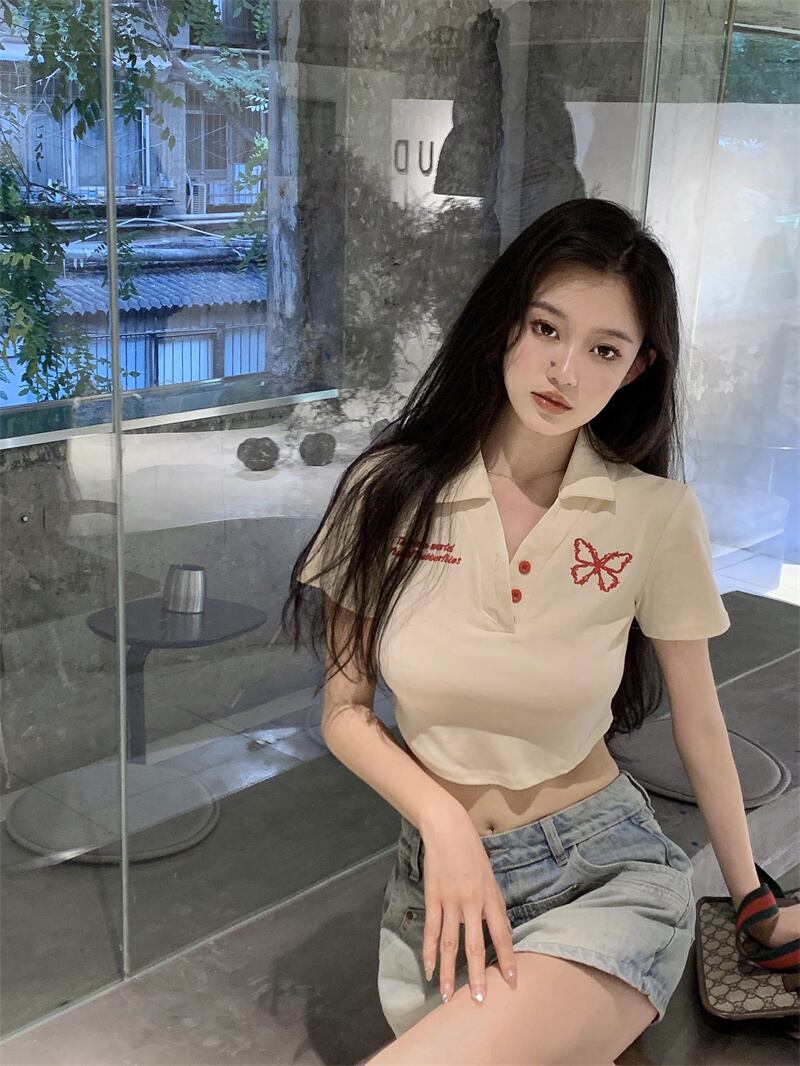VネックショートTシャツ サマー薄手ハイウェストトップス 大人ガーリー スウィート キュート カジュアル 夏物 Oネック s57614154483715