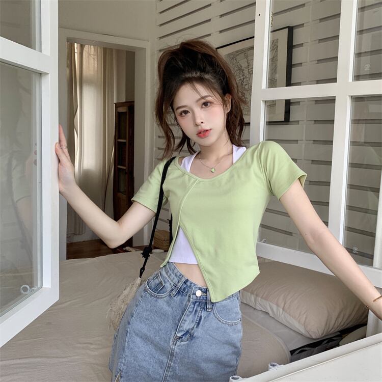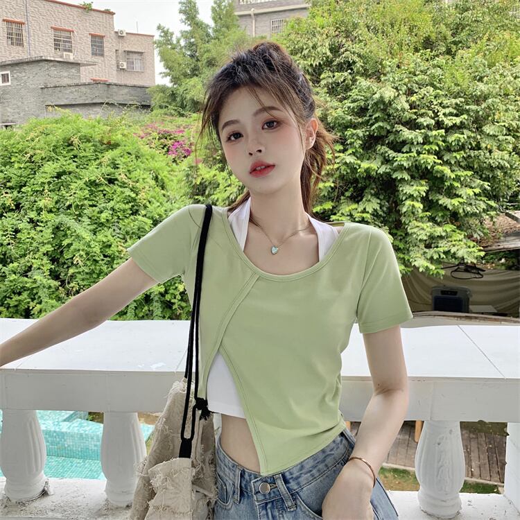 VネックショートTシャツ サマートップス 大人ガーリー スウィート キュート カジュアル 夏物 ステッチ s5761249101628