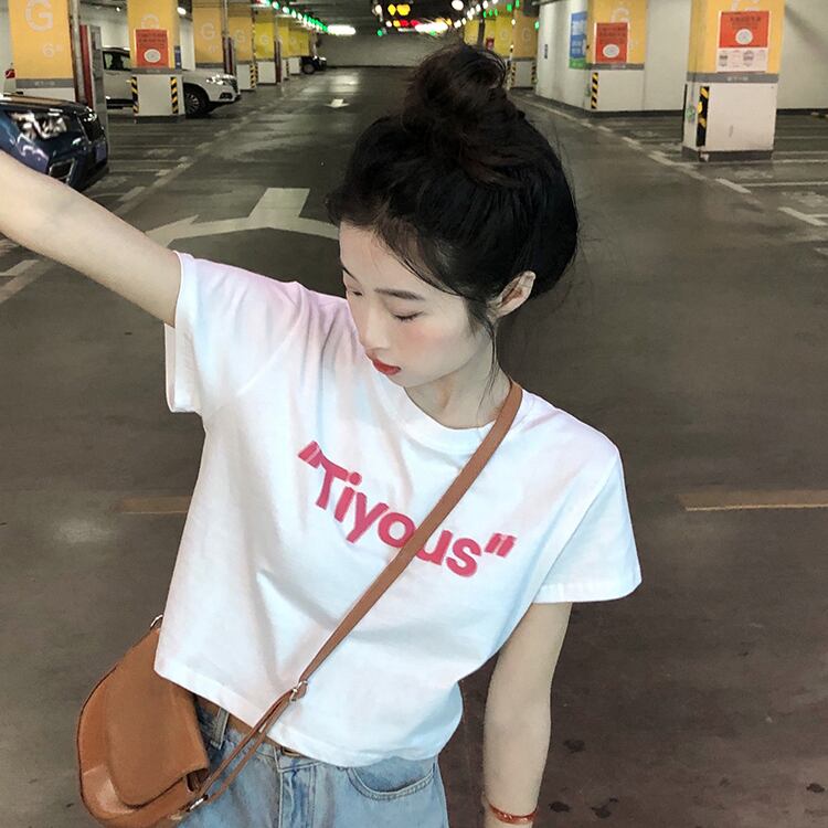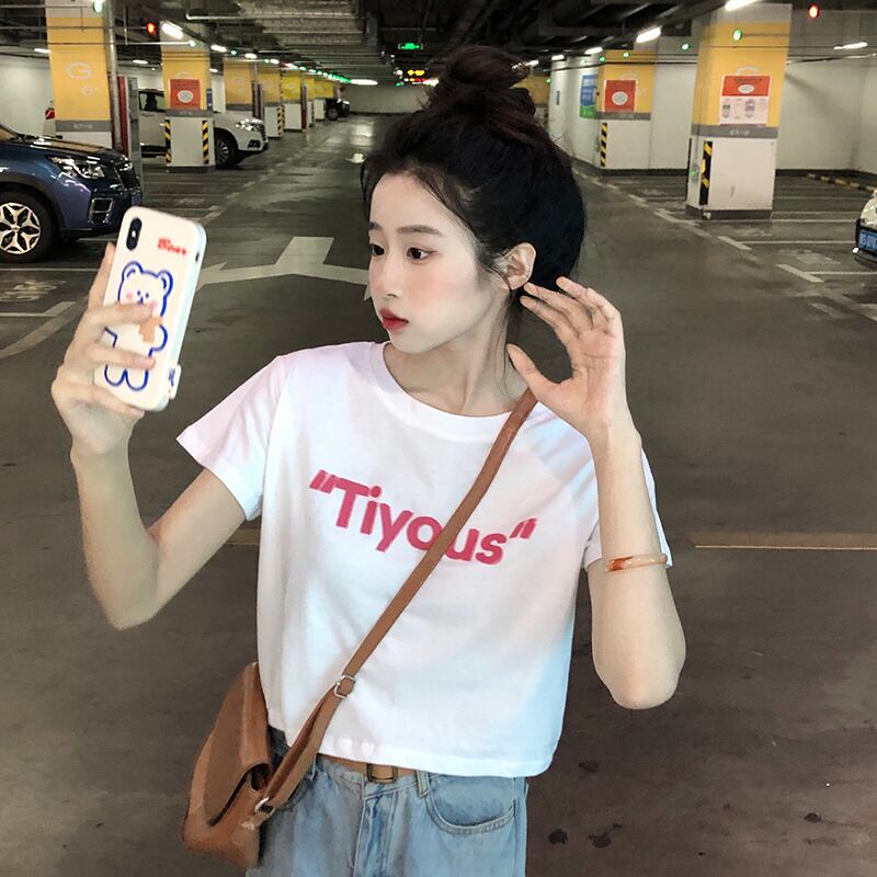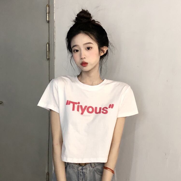 ホワイトショートTシャツ サマー薄手トップス コットン 大人ガーリー スウィート キュート カジュアル 夏物 s576164621076574
