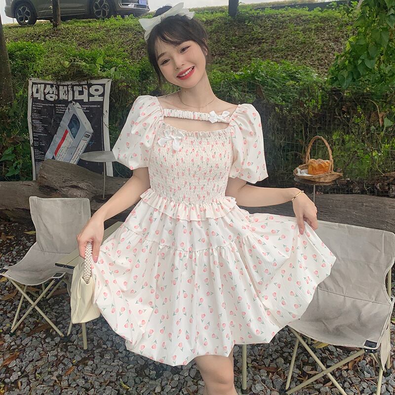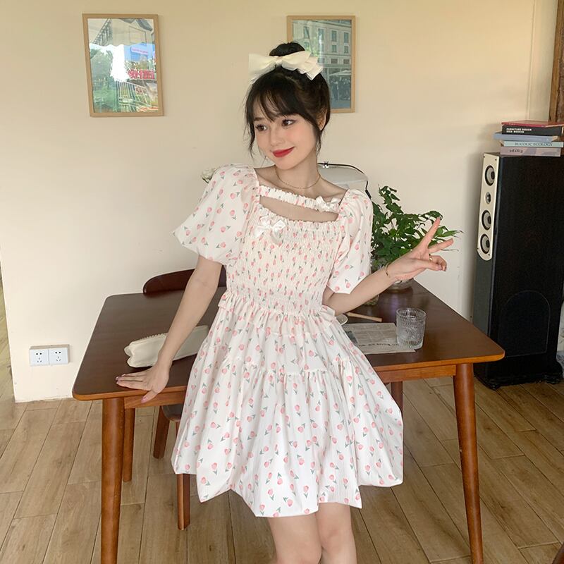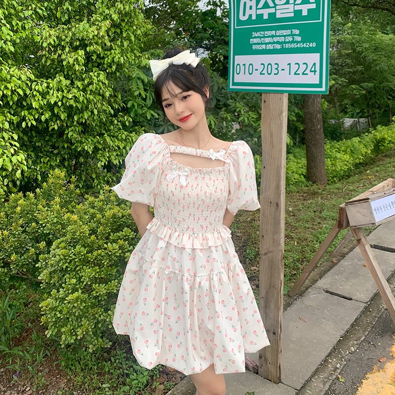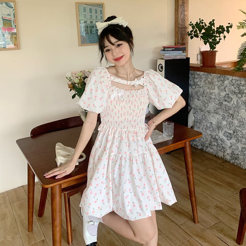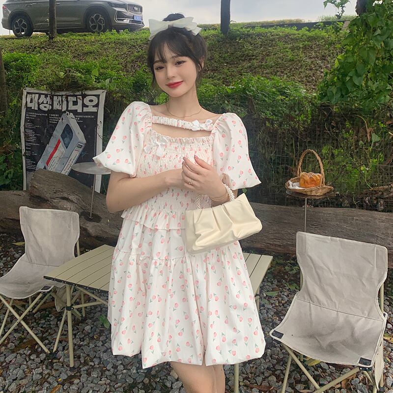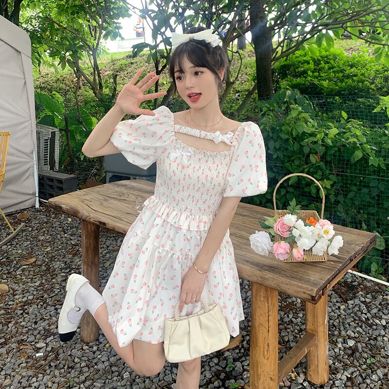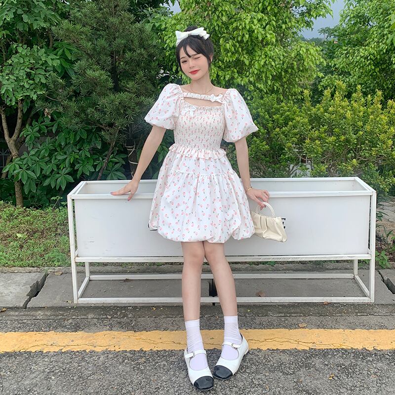 スリーブフローラルドレス サマースカート 大人ガーリー スウィート キュート カジュアル 夏物 花柄 s576157967164320