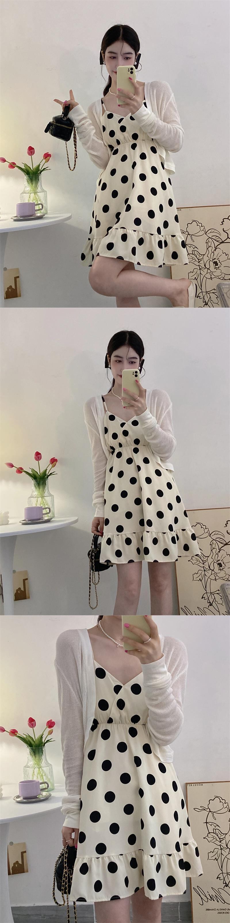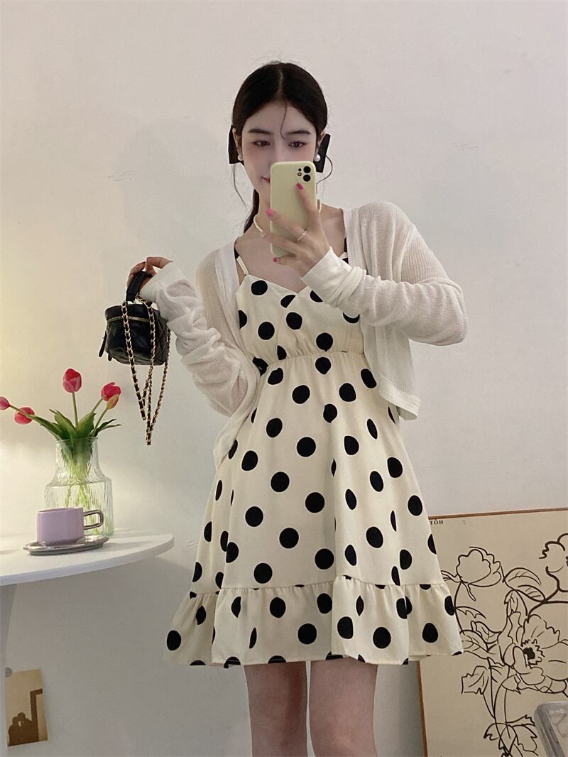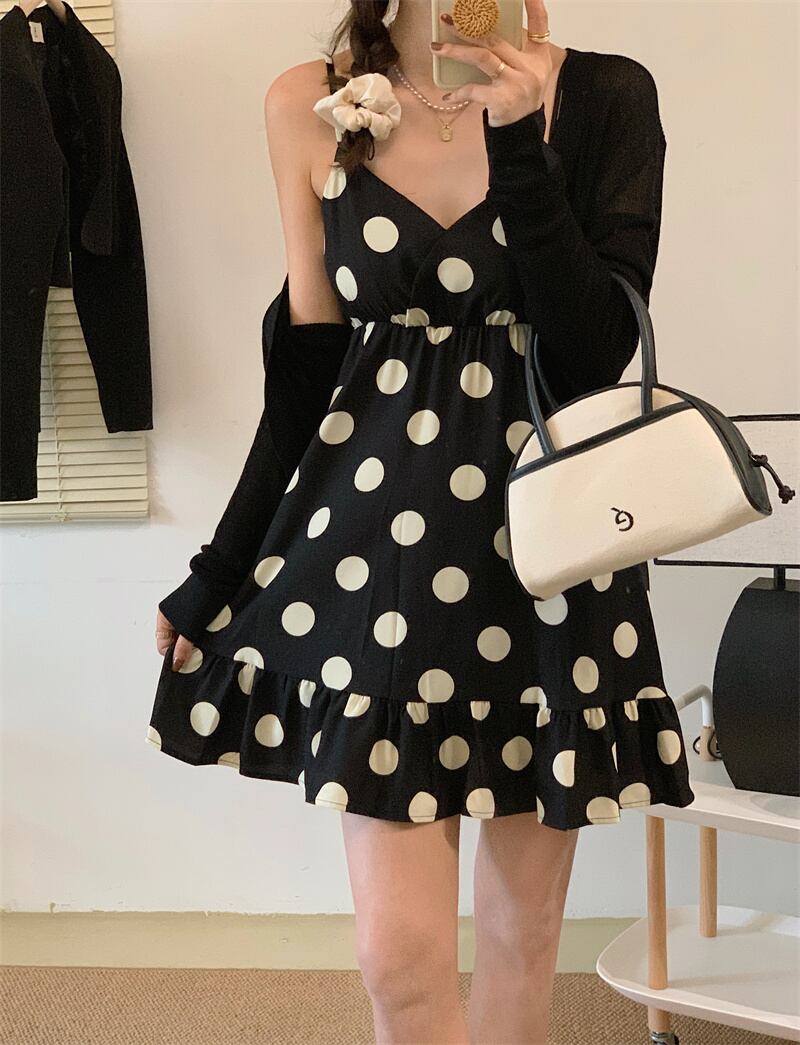 Vネック水玉ドレス サマーウェストスカート 夏物 s576114061065578