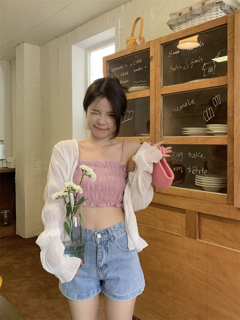色:ピンクsuspender,ホワイトcardigan
