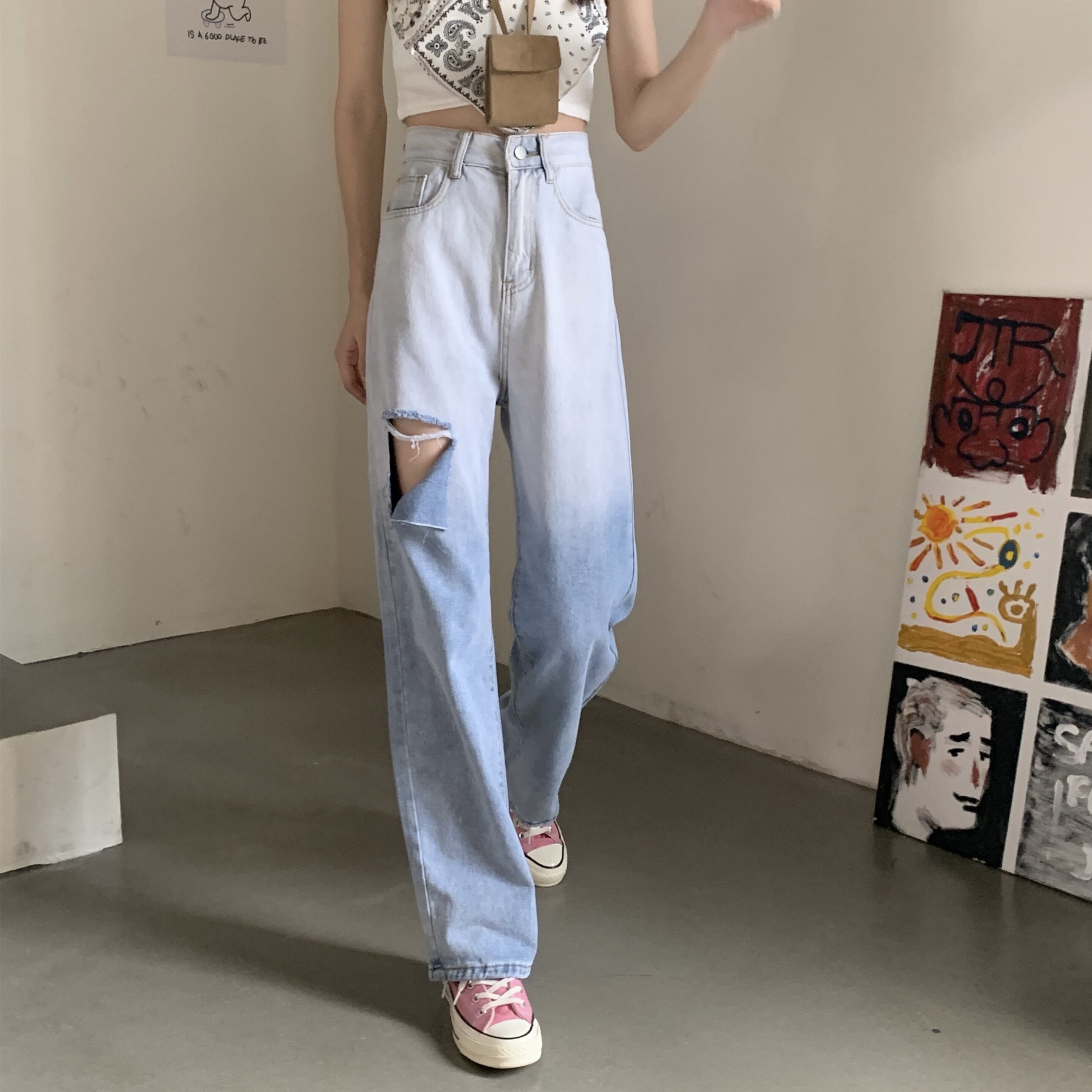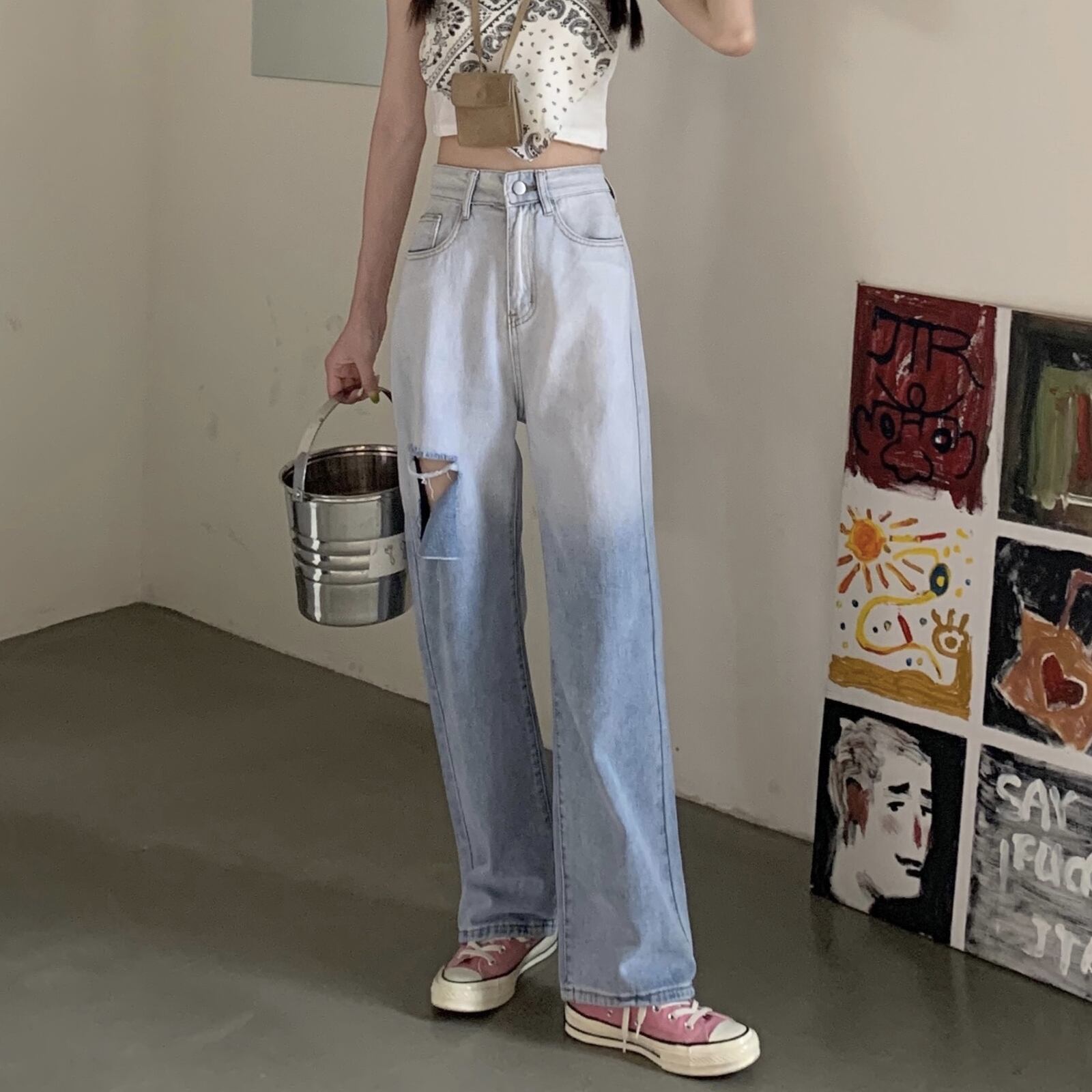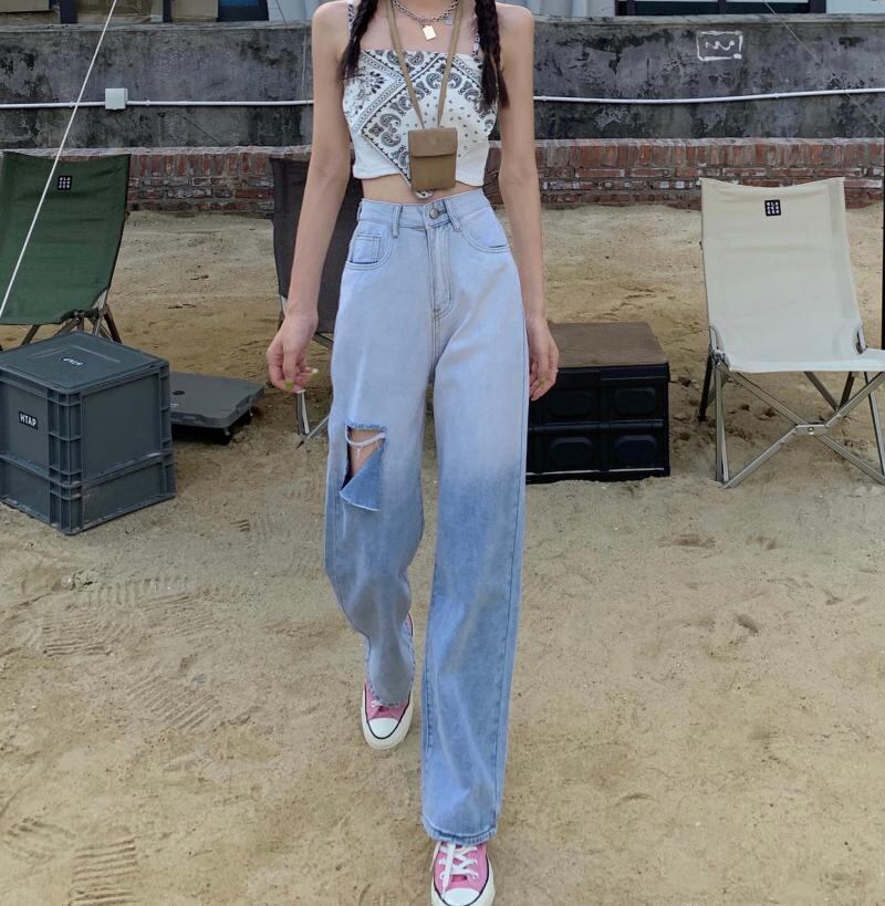 ジーンズ サマー薄手ハイウェストルーズパンツ 夏物 s576113995780212