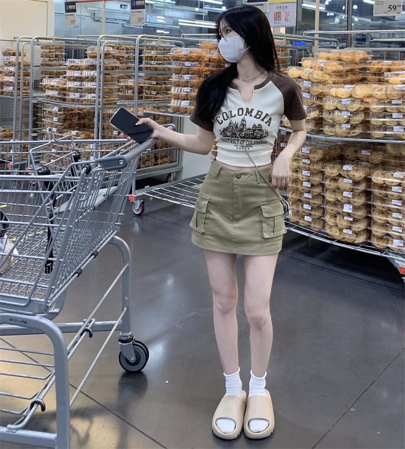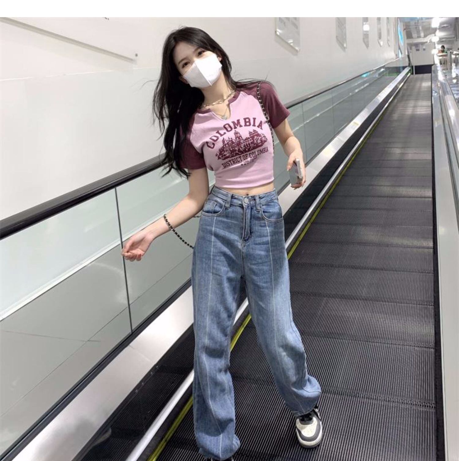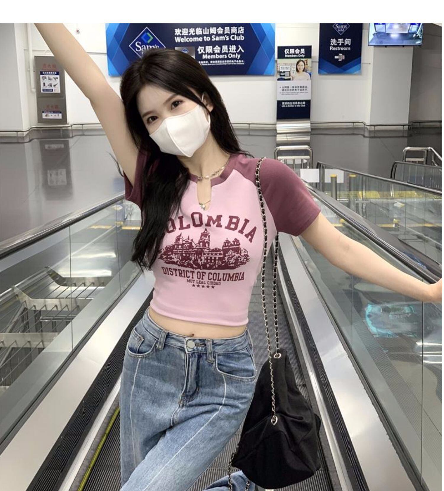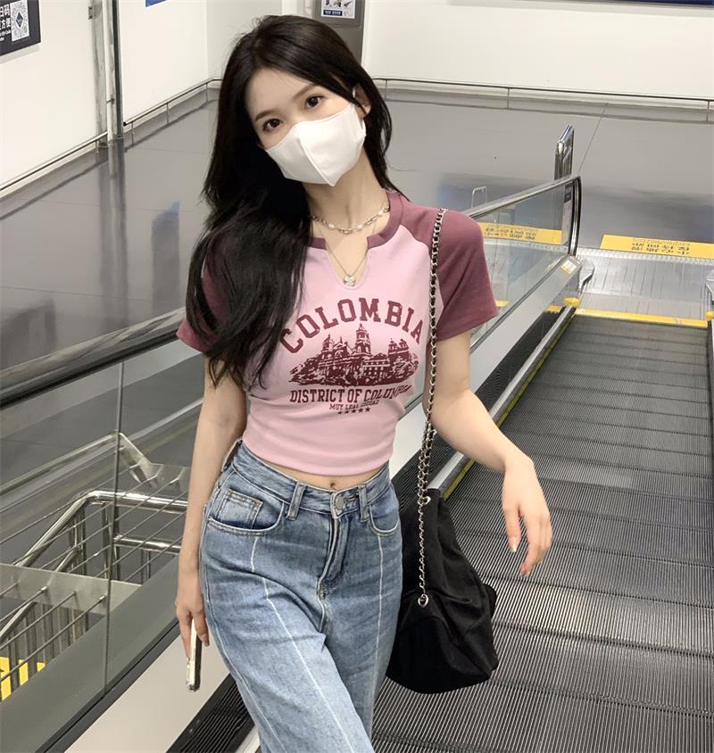 スタンダードVネックスリムフィットショートサマーTシャツ トップス レトロ 夏物 s576154882984059