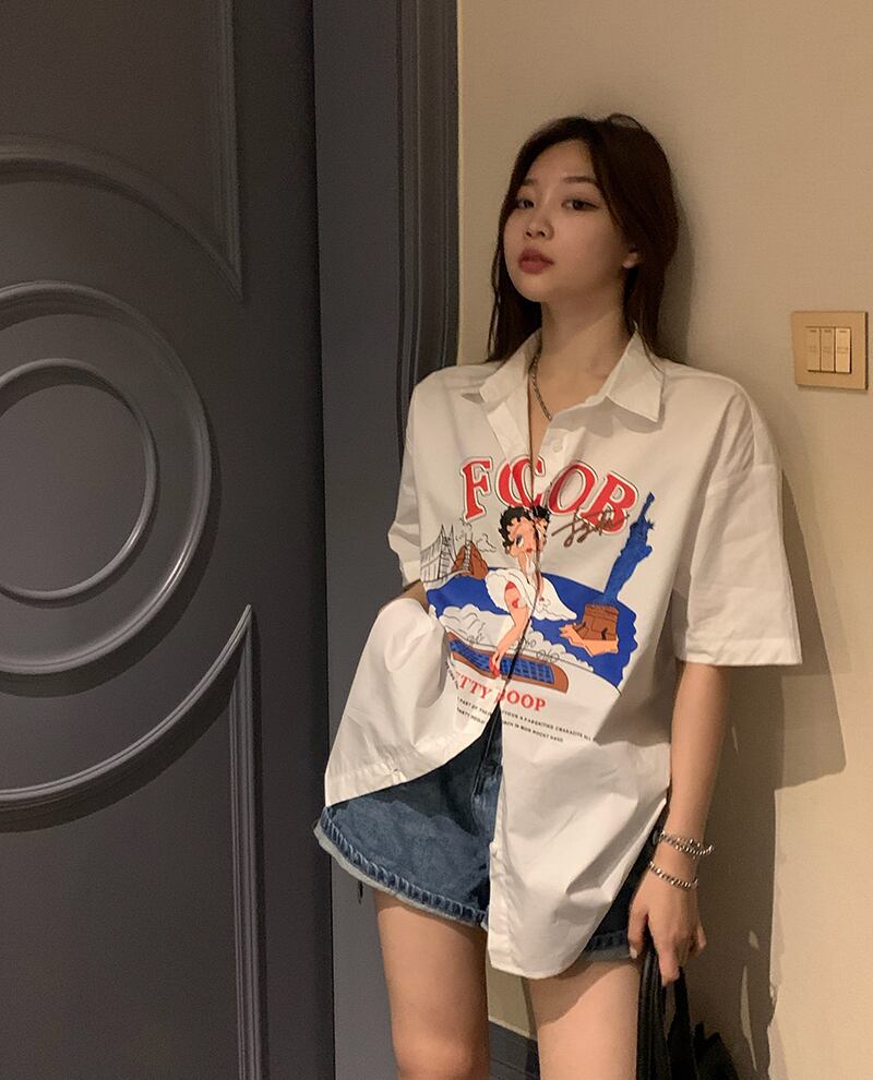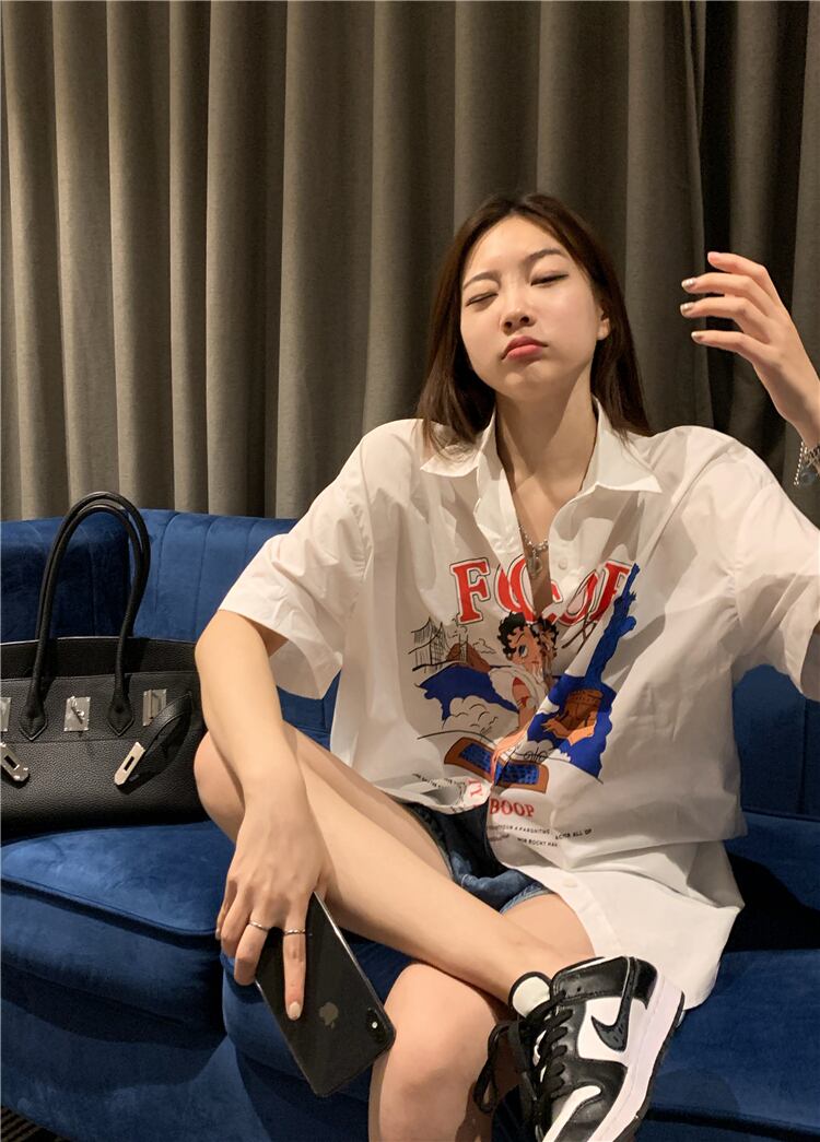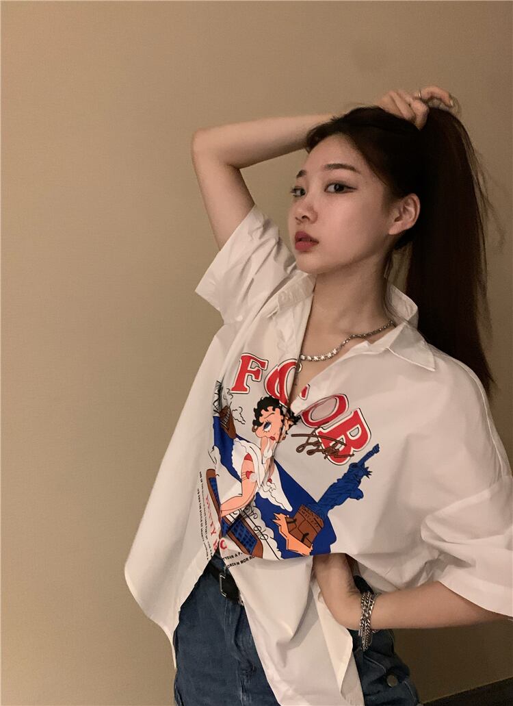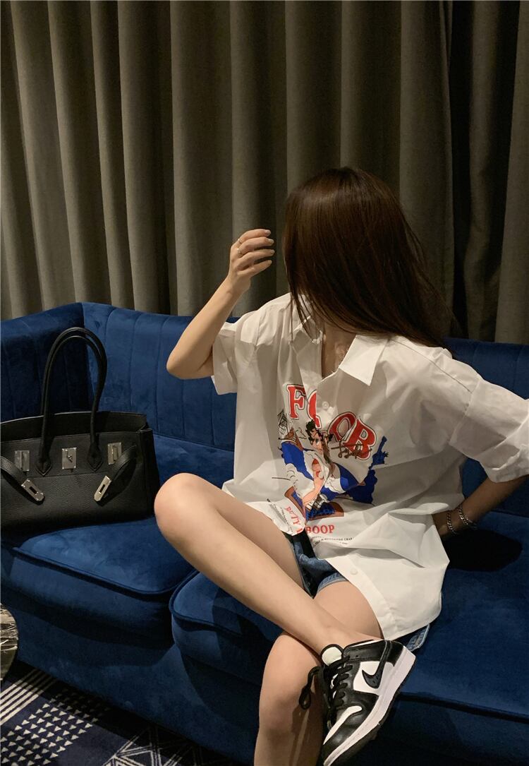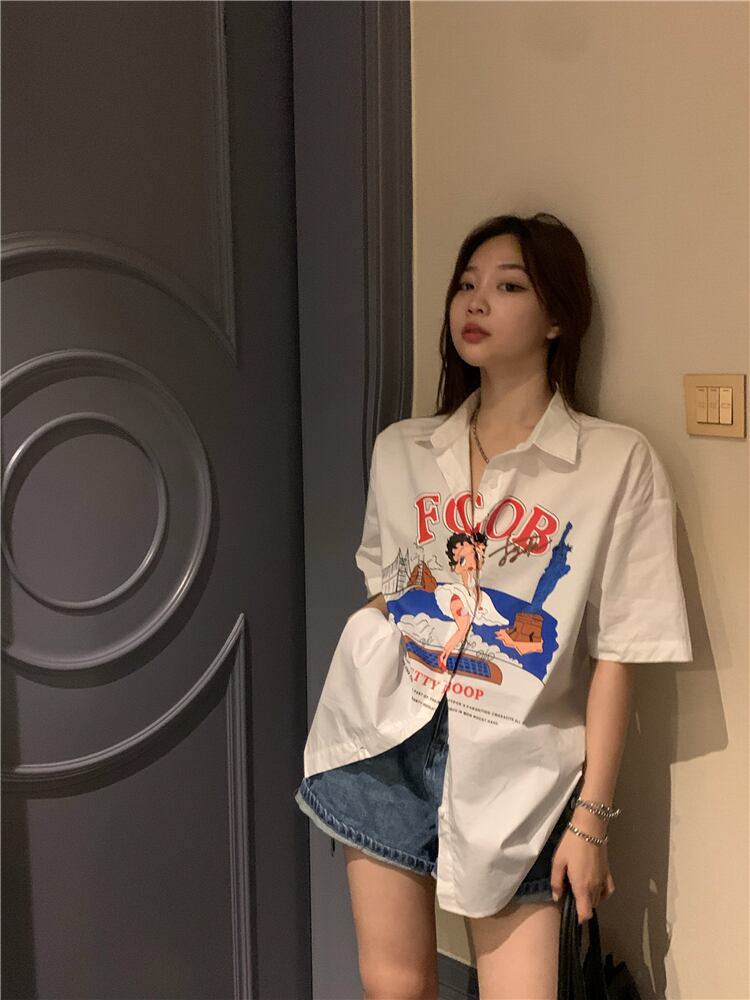 サマールーズシャツ スタイルスタンダードホワイトカーディガントップス レディース レトロ 大人ガーリー スウィート キュート カジュアル 夏物 s576167962730920