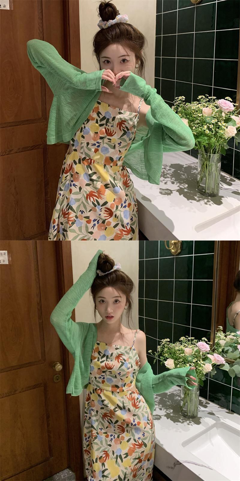 色:スカート,Cardiganホワイト,Cardiganグリーン
