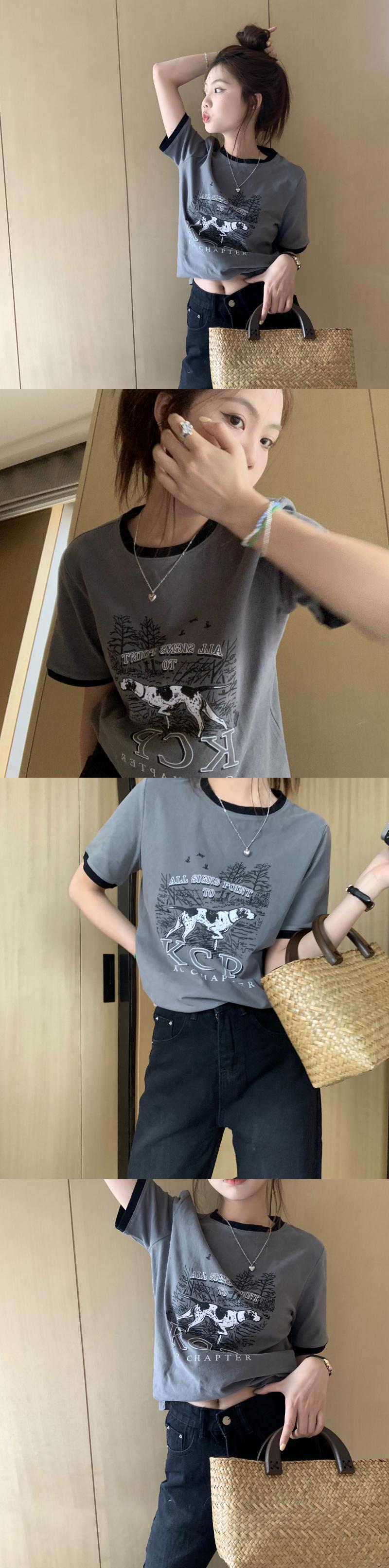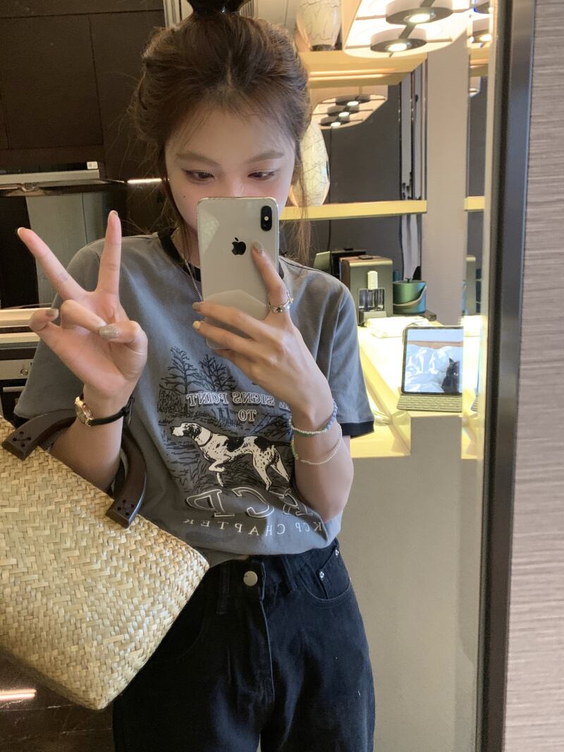 スタンダードルーズTシャツ サマードレス グレープリントトップス レトロ 夏物 s576184476483460