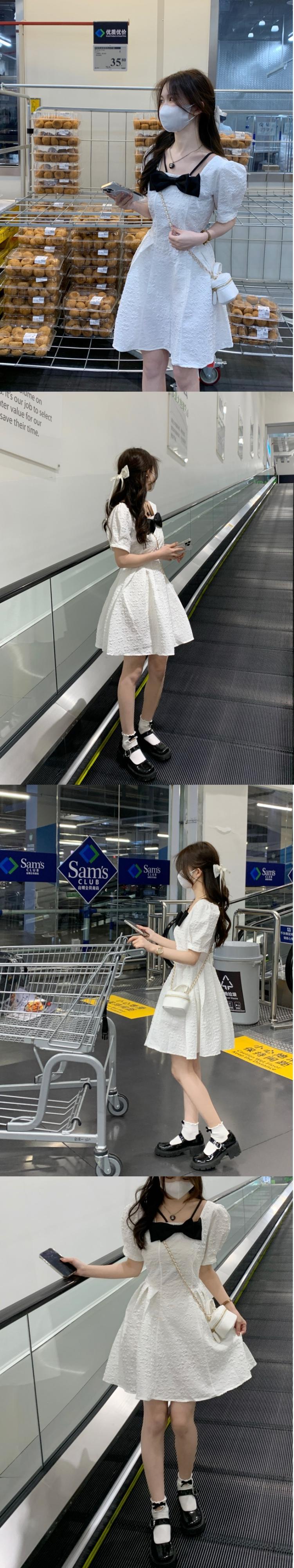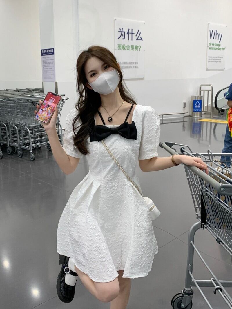 リボンドレス サマースタンダードパターンハイウェストウェスト薄手スカート レトロ 夏物 スクウェア s576140550631315
