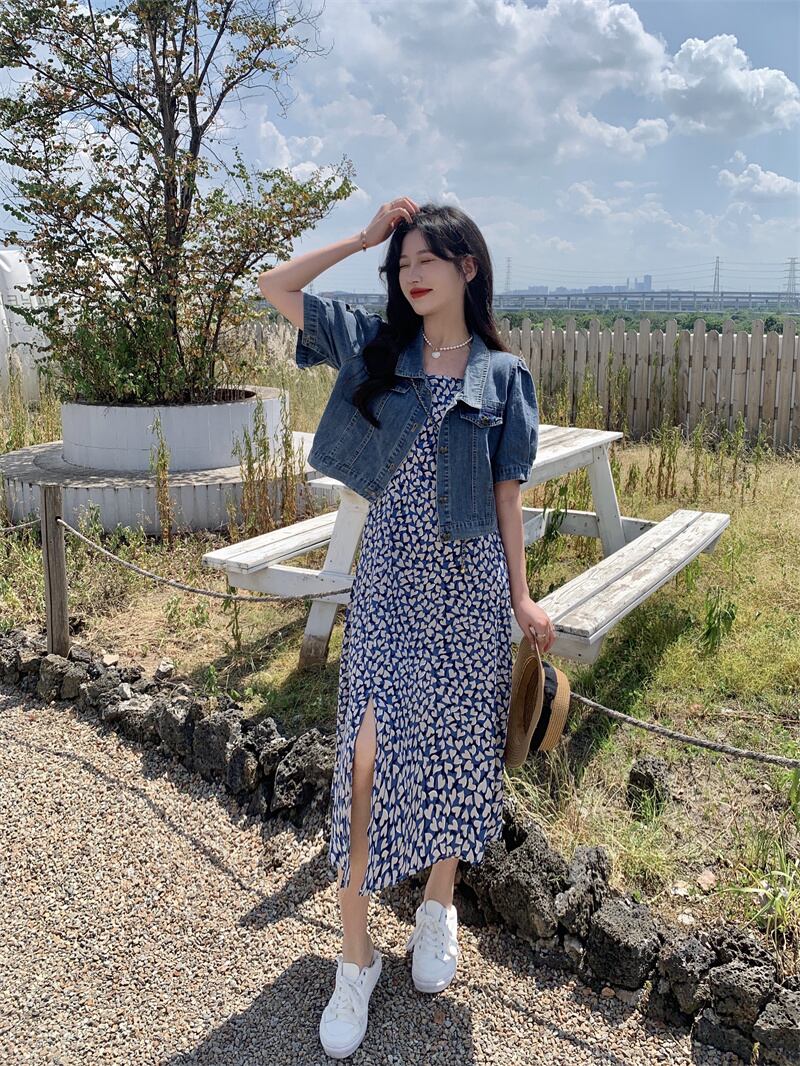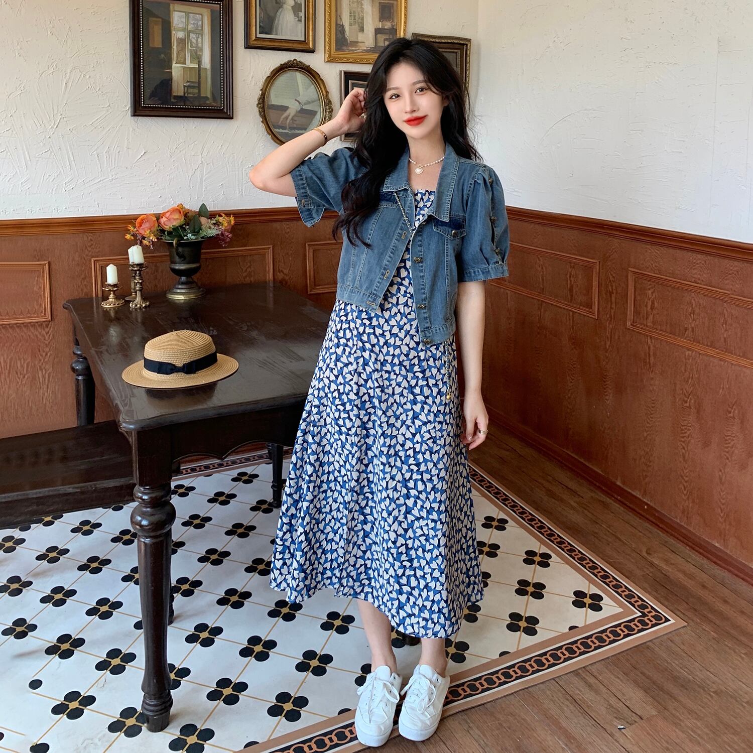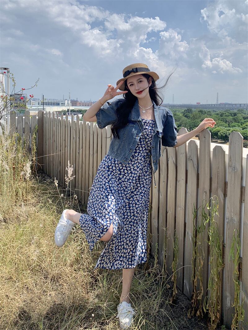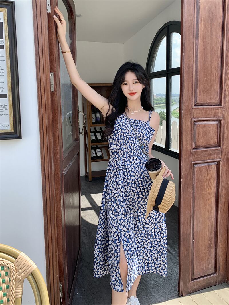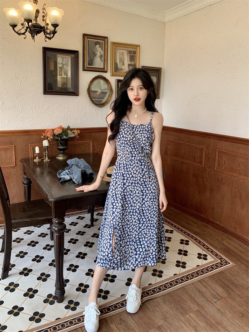 フローラルドレス サマーウェスト薄手ロングスカート 夏物 花柄 s576144390384918