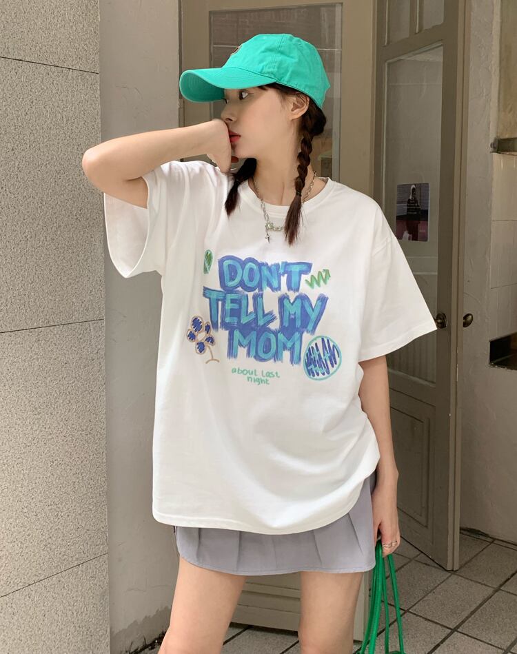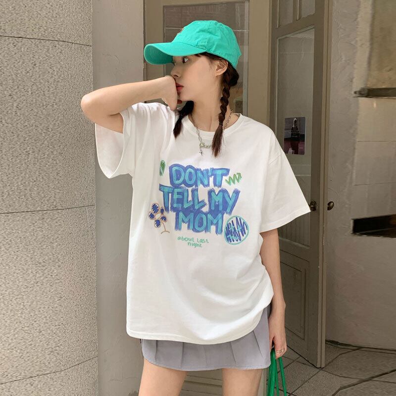 ホワイト半袖スリーブTシャツ サマールーズスタイルトップス ショート ハーフスリーブ 夏物 s576147152648191