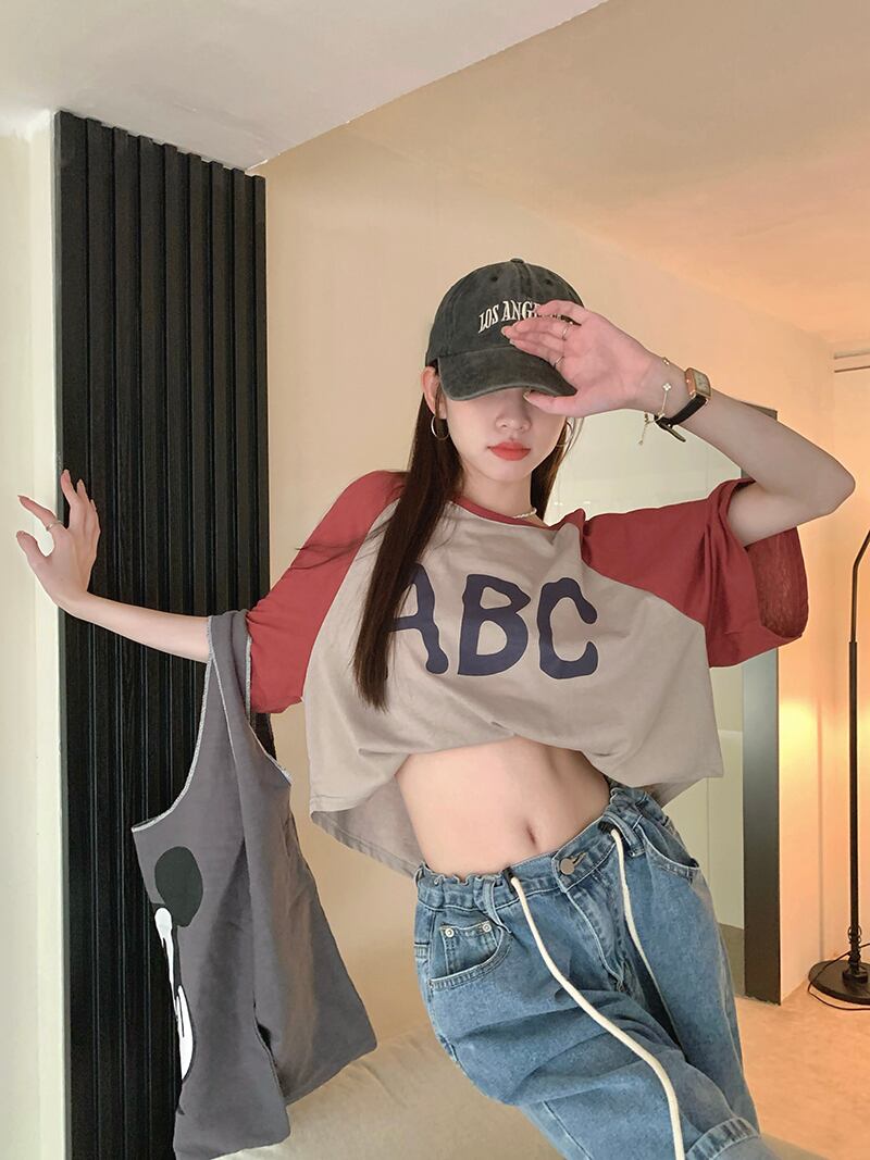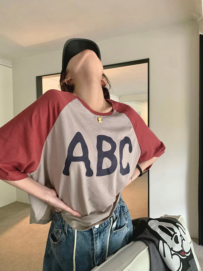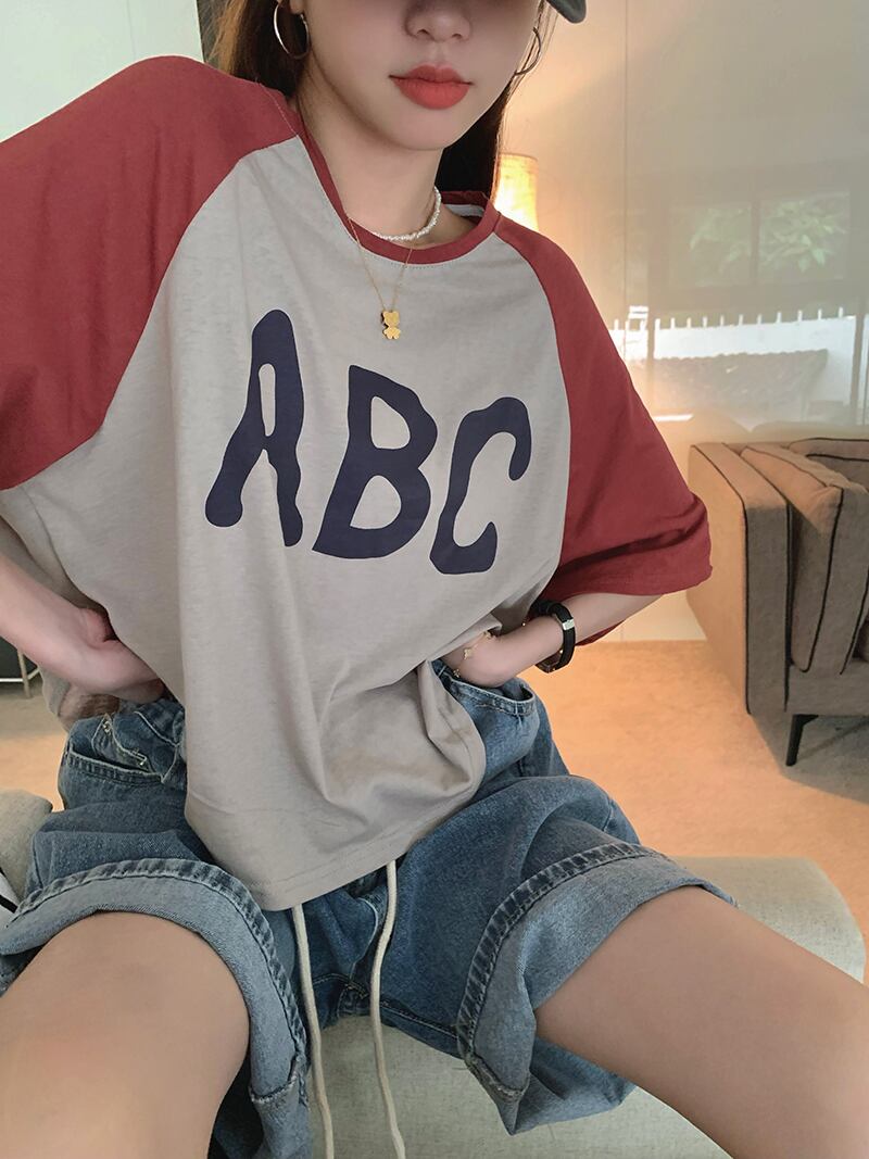 Tシャツ サマースタンダードレッドルーズカジュアルトップス レトロ 夏物 s576148700573344