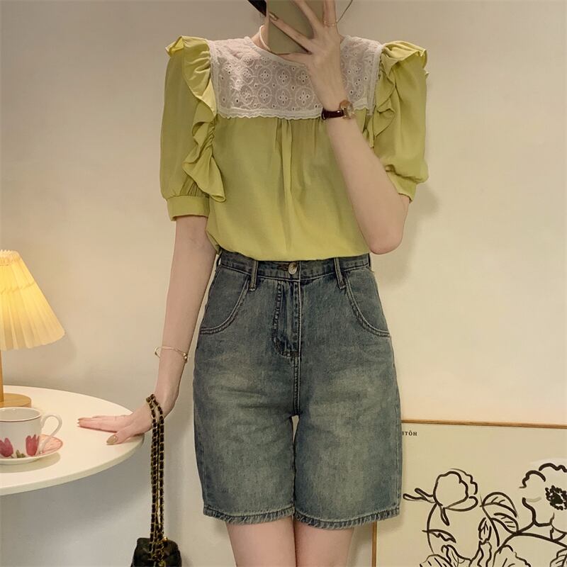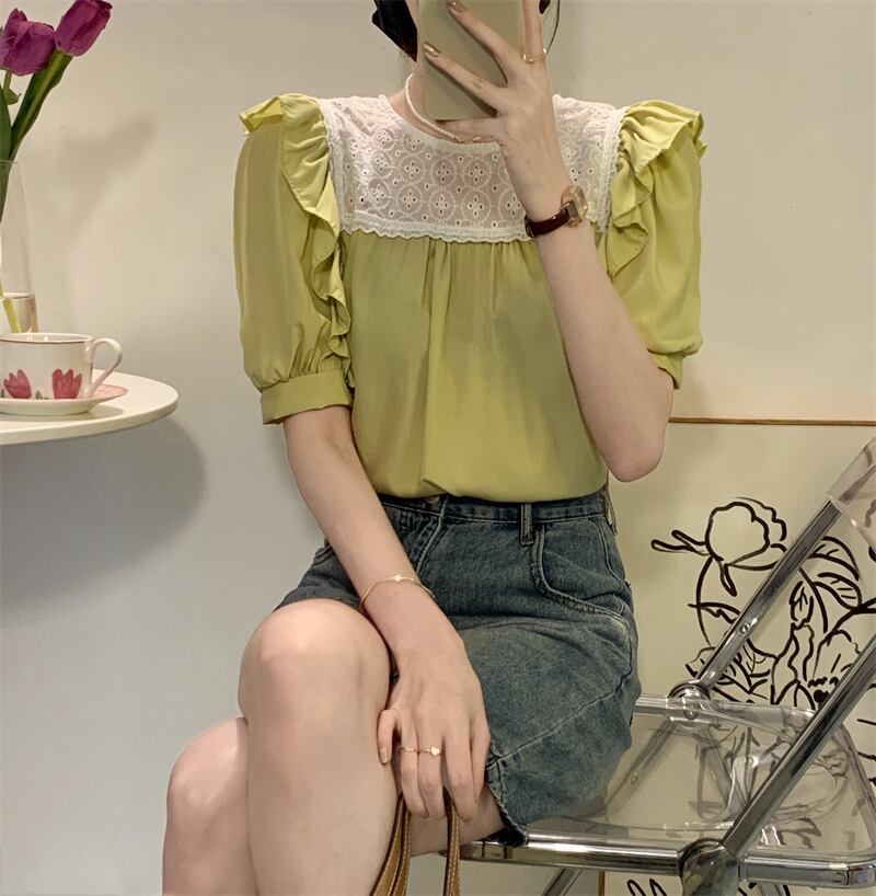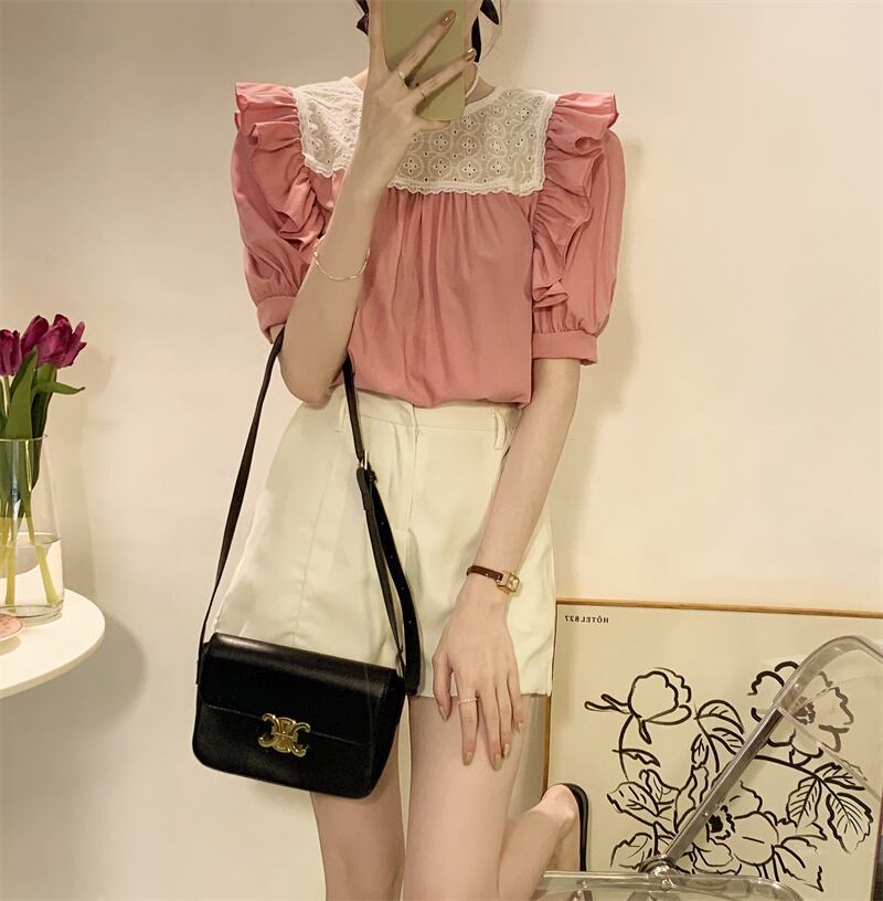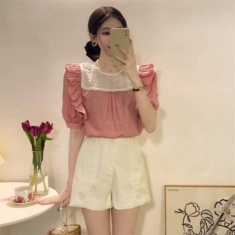 スリーブトップス サマーホワイトシャツ 大人ガーリー スウィート キュート カジュアル 夏物 s576153991847251