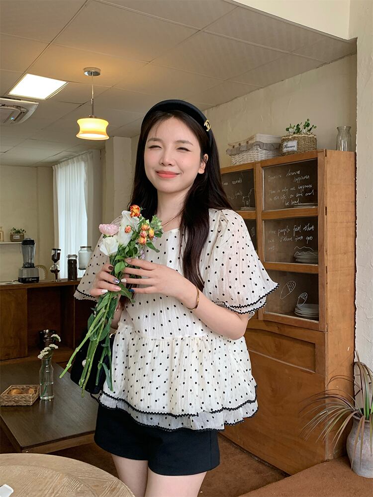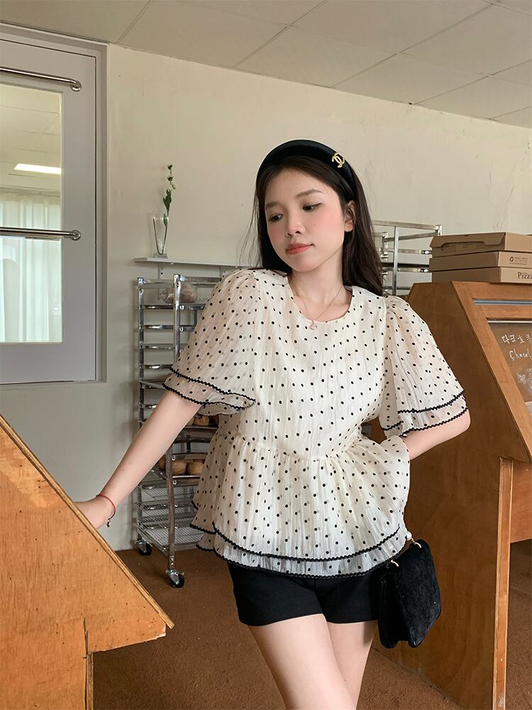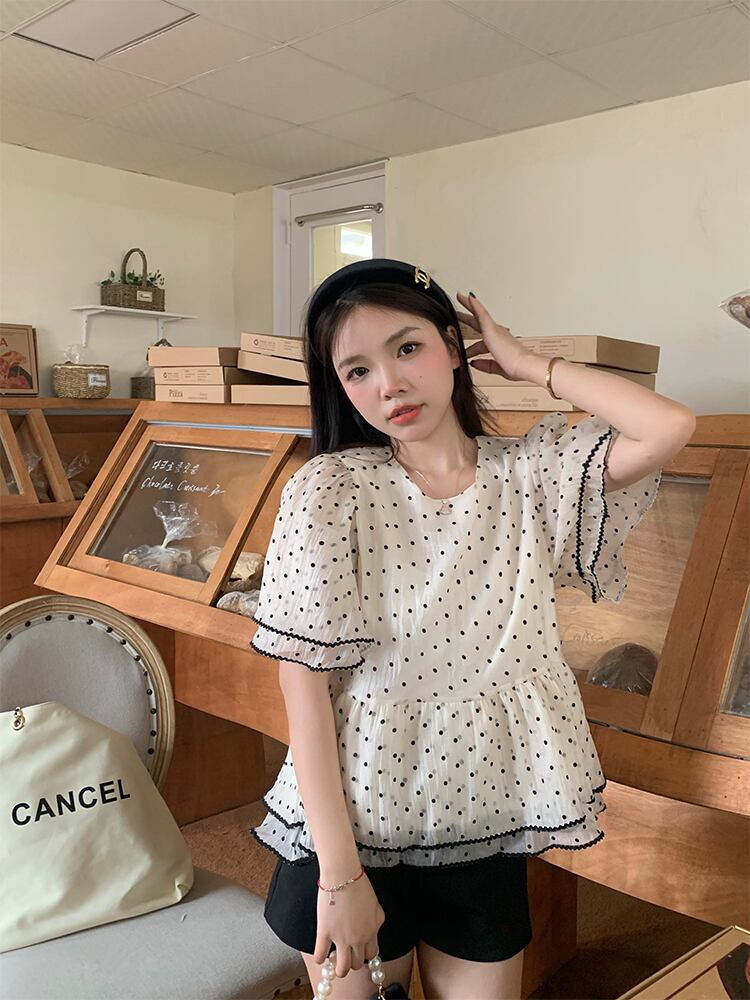 水玉スリーブシャツ サマールーズトップス 夏物 s576191424119545