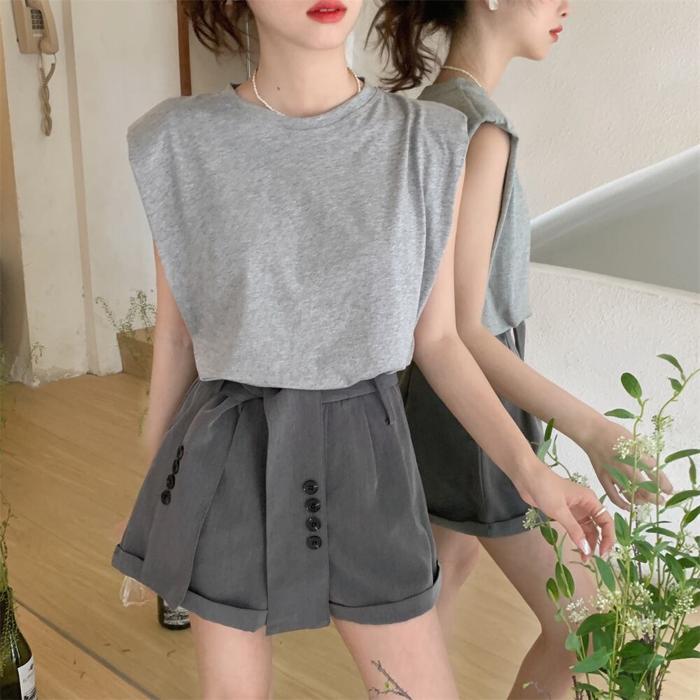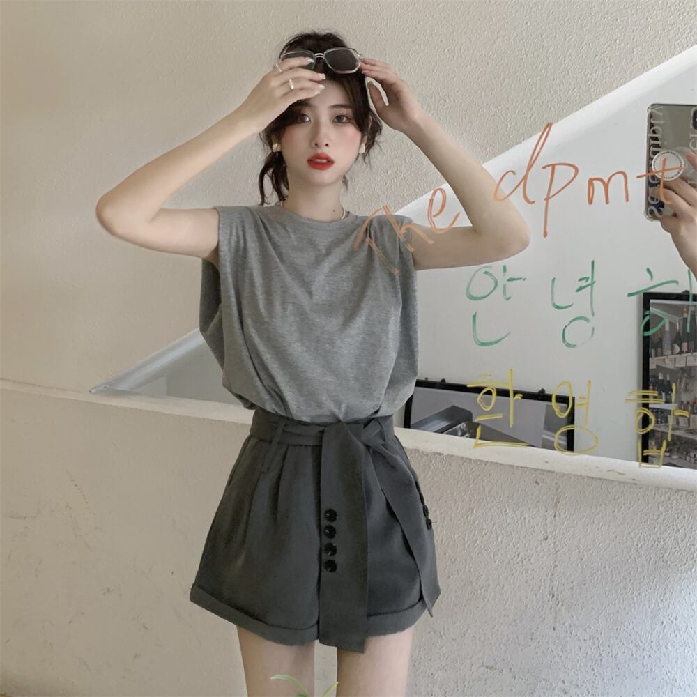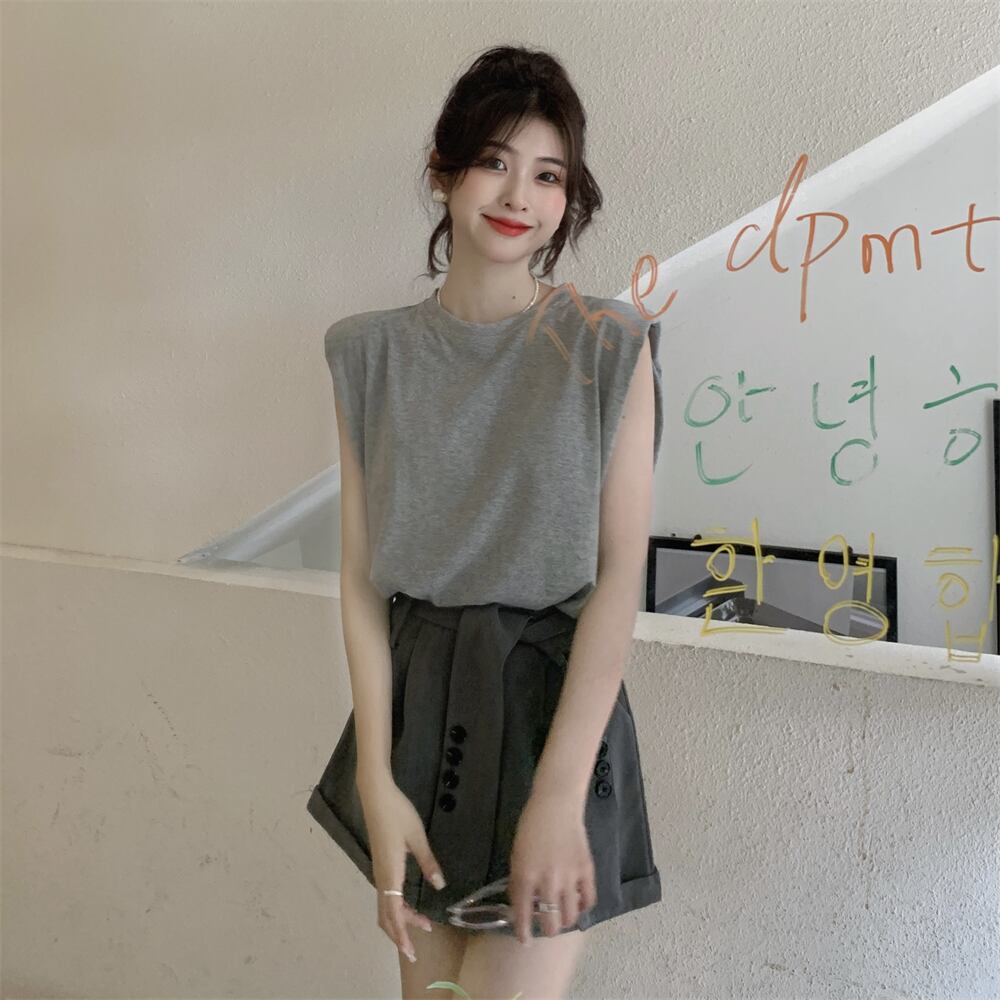 ノースリーブTシャツ サマースタイルルーズラウンドネックトップス 夏物 Oネック s576139571638089