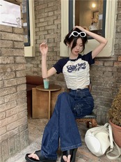カラーショートTシャツ サマープリーツスリムトップス 夏物 s576183428712625