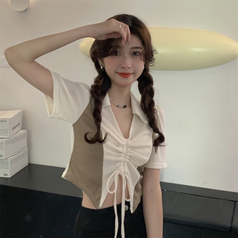 カラー半袖スリーブTシャツ サマートップス ショート ハーフスリーブ 夏物 ステッチ s576123976923945