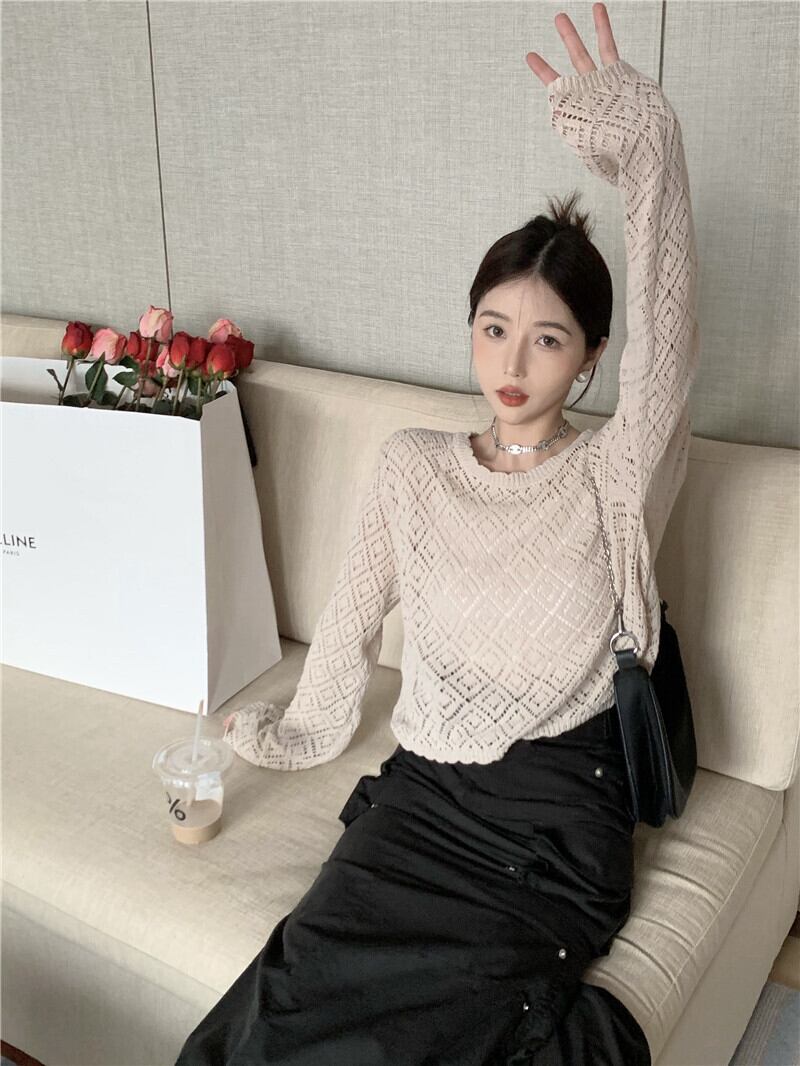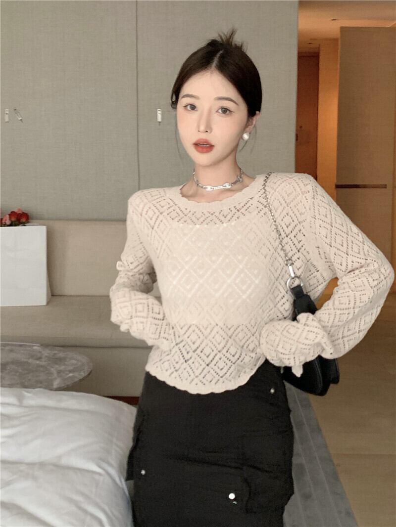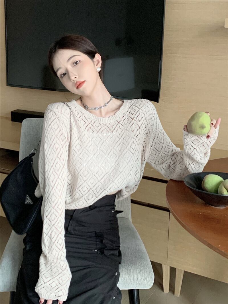 スタンダードFlowerデザイン ニットTシャツ サマー薄手ショートトップス ロング レトロ 夏物 フラワーデザイン s576152725232894