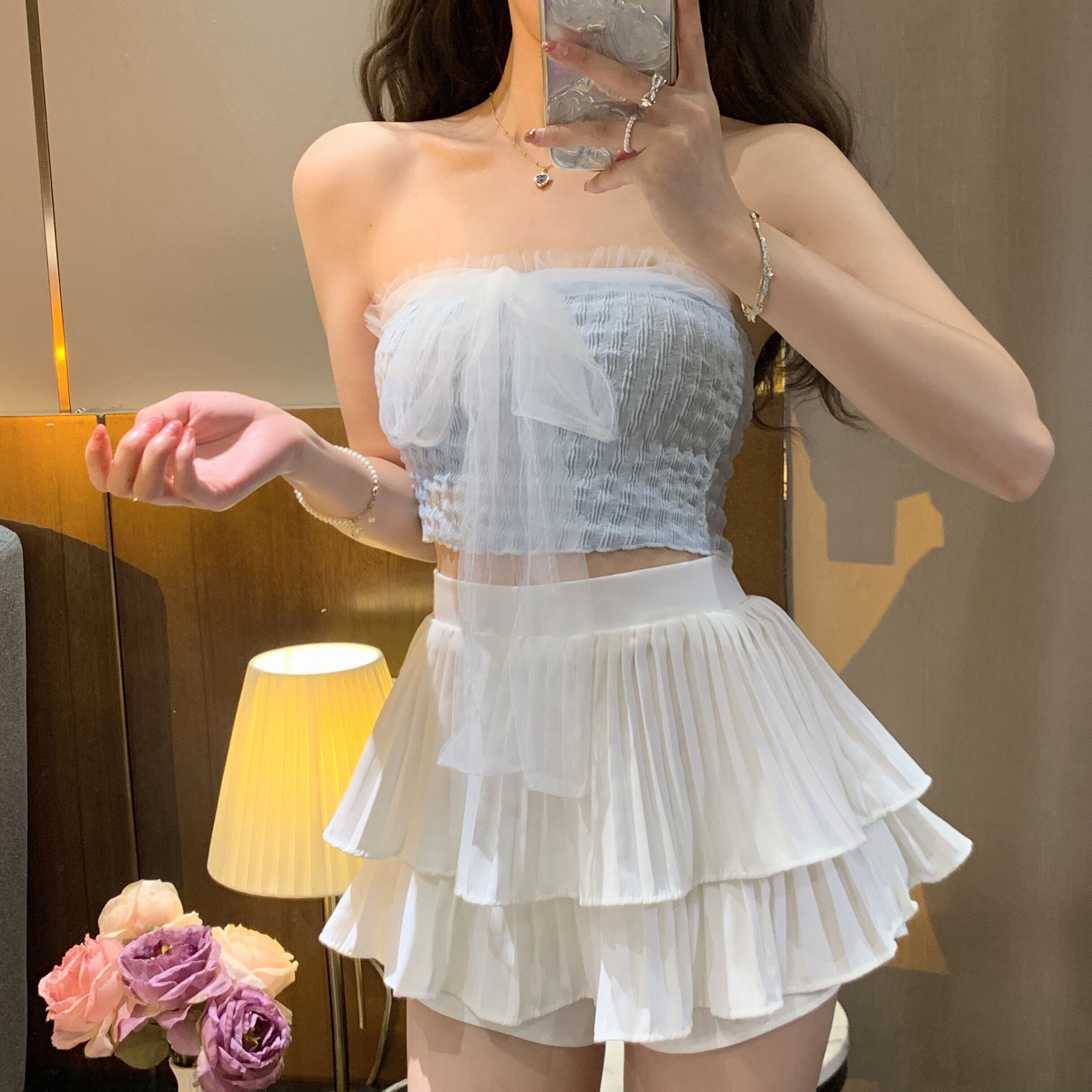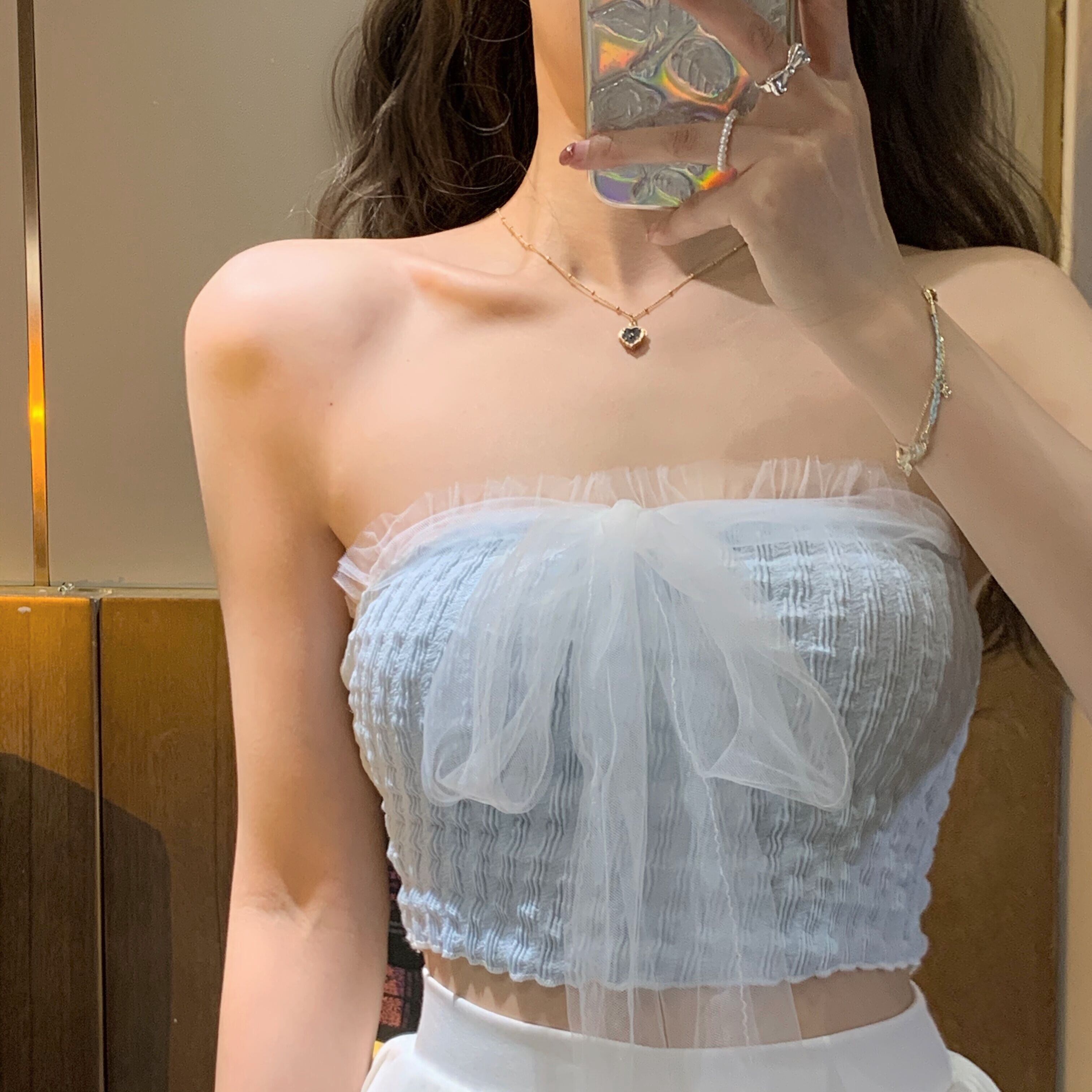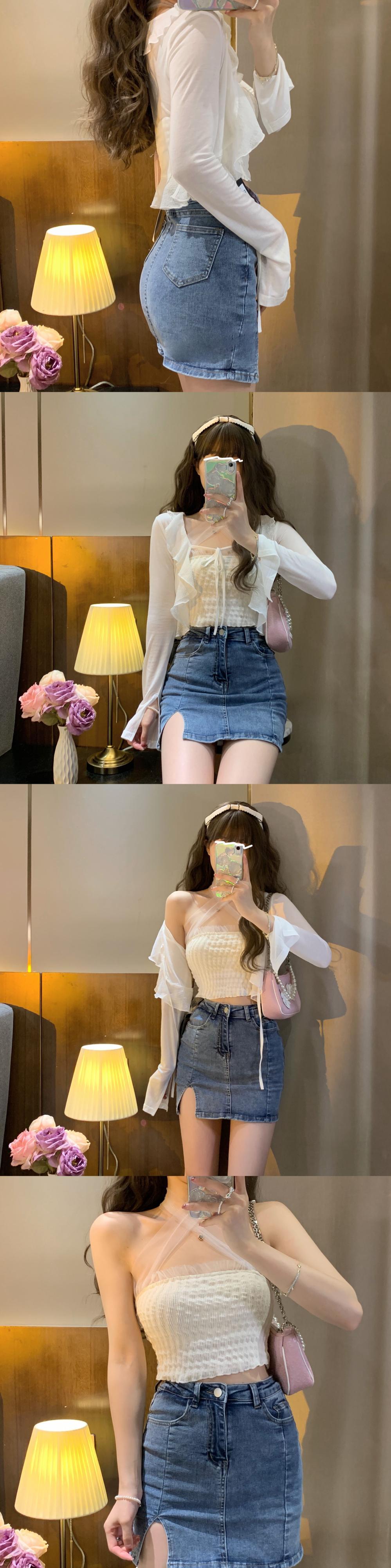 色:ホワイトcardigan,ブルーtubeトップ,ホワイトtubeトップ