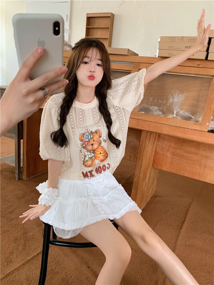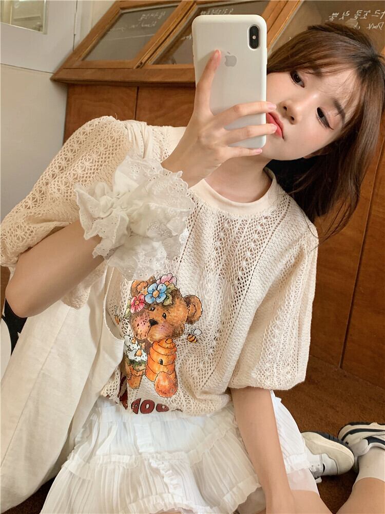 スリーブTシャツ サマー薄手スタイルトップス 大人ガーリー スウィート キュート カジュアル 夏物 s576165133739901