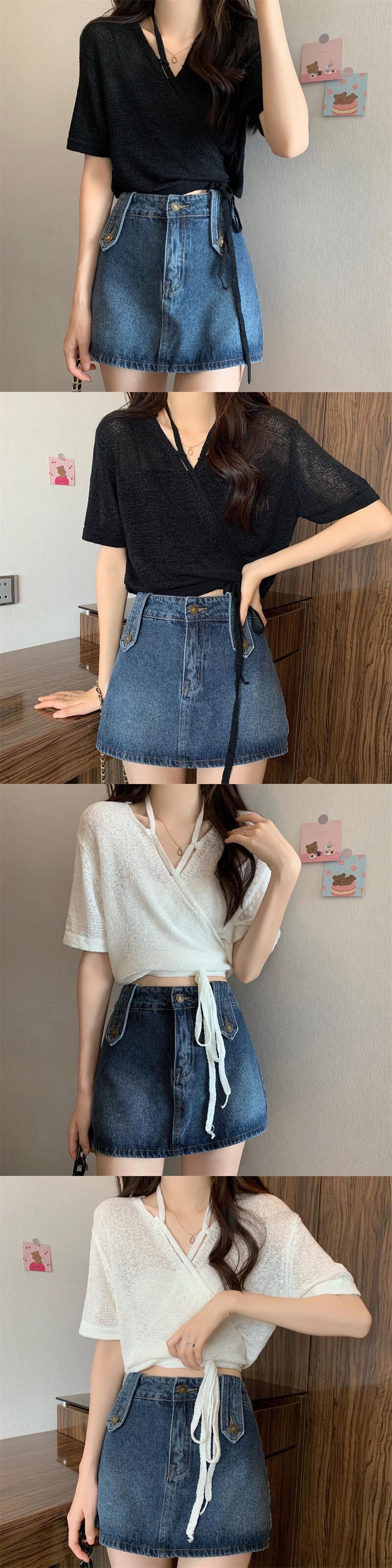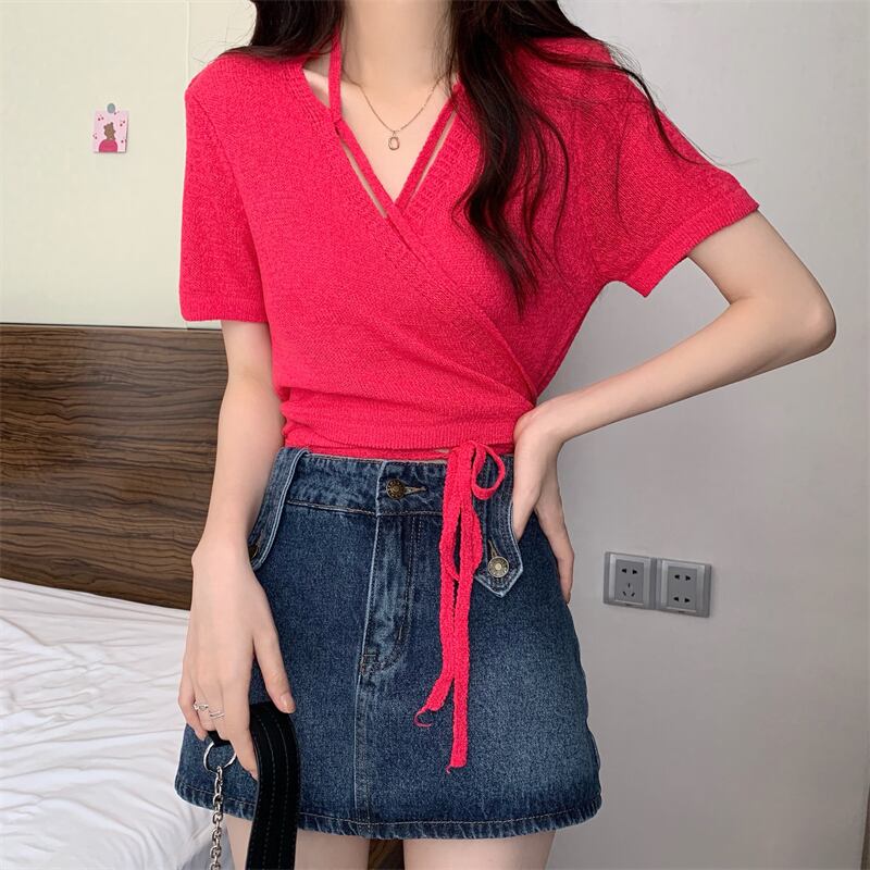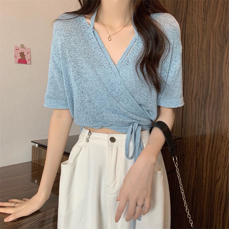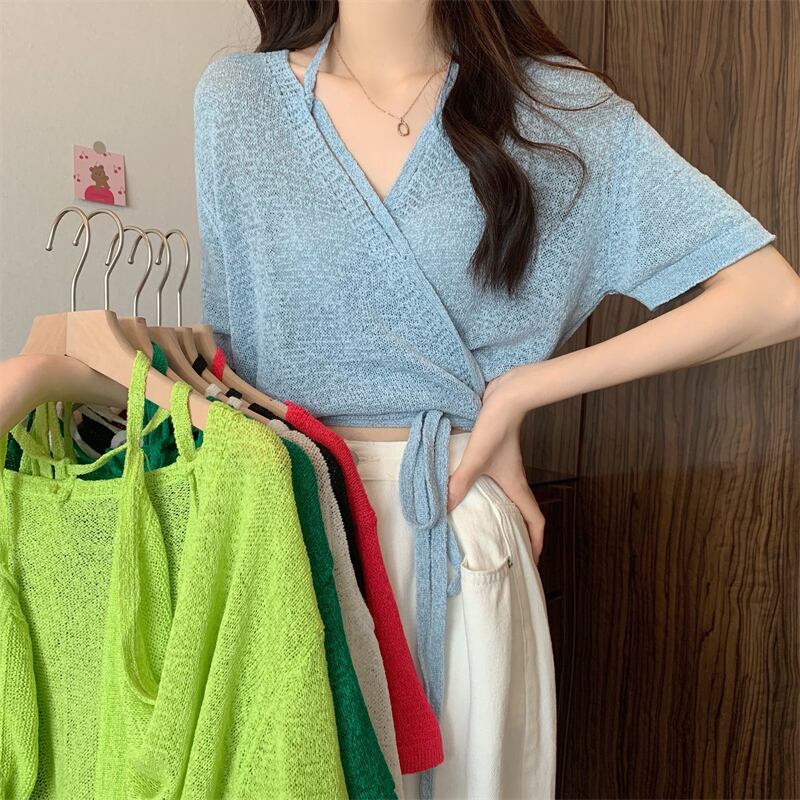 ショートニットカーディガンサマー薄手Vネックトップス 夏物 s576125348984707
