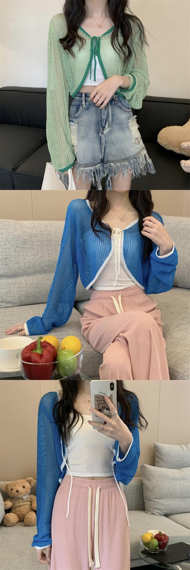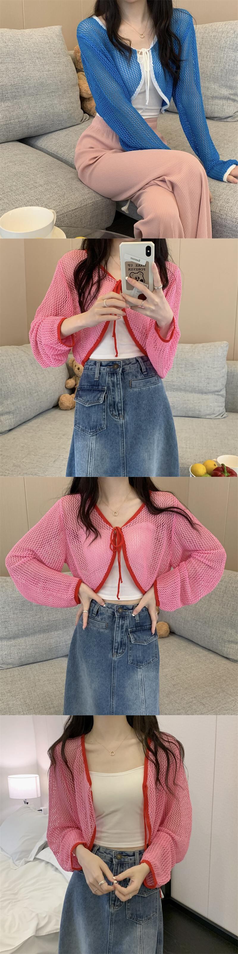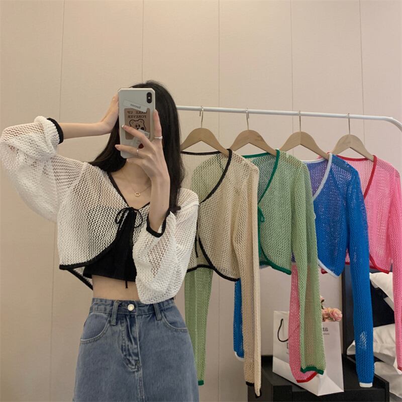 レースブラウス カーディガンコート サマー薄手ニットトップス ロング 夏物 s576126660155630